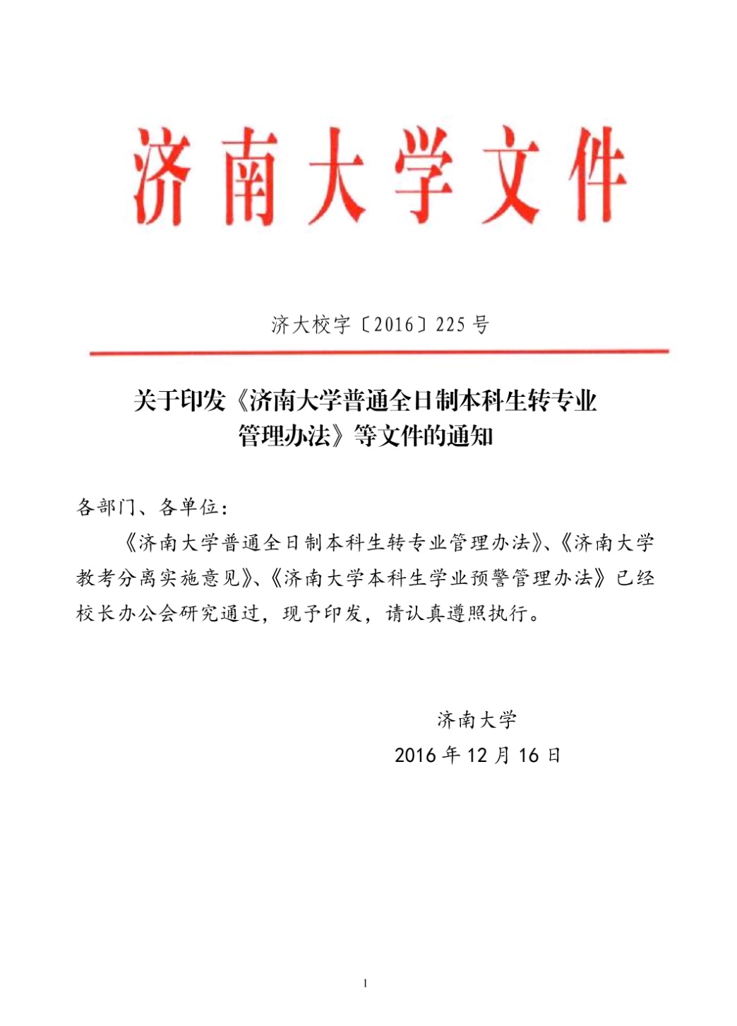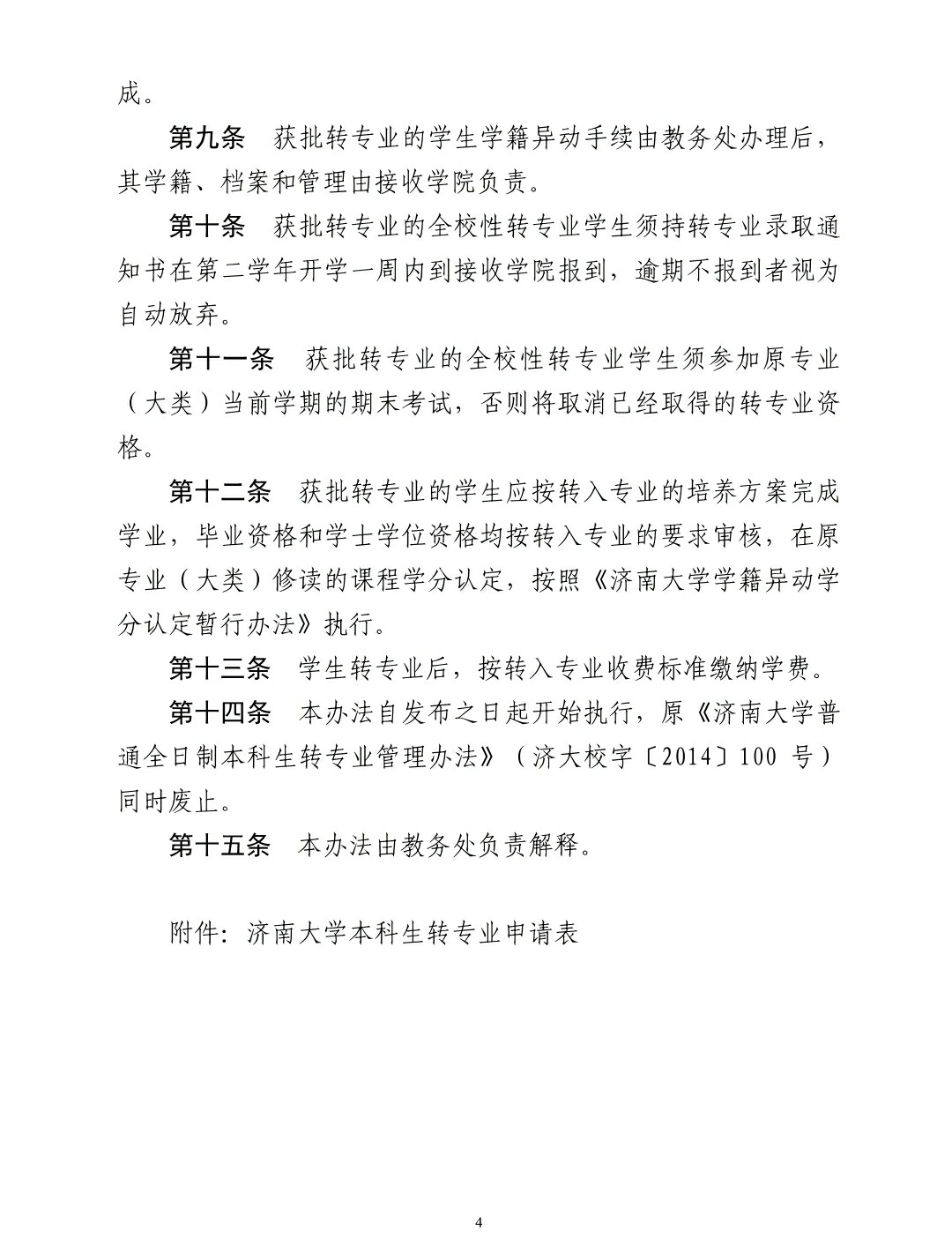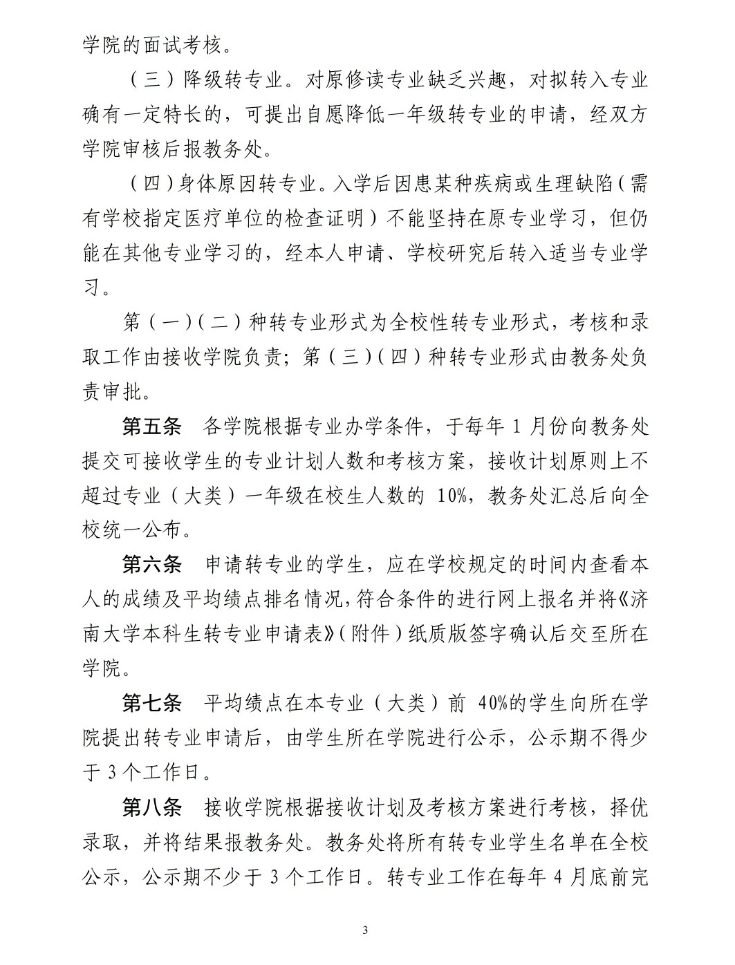 《济南大学普通全日制本科生转专业管理办法》