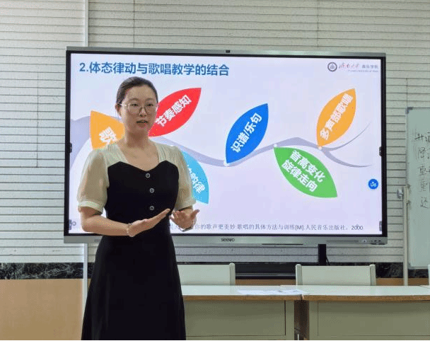 多媒体教室成功举办。音乐教育系孙人君老师以《身体律动,让歌唱“活”起来:达尔克罗兹教学法在歌唱教学中的应用》为题,通过互动的方式带领到场学生亲身领悟律动的奥秘。