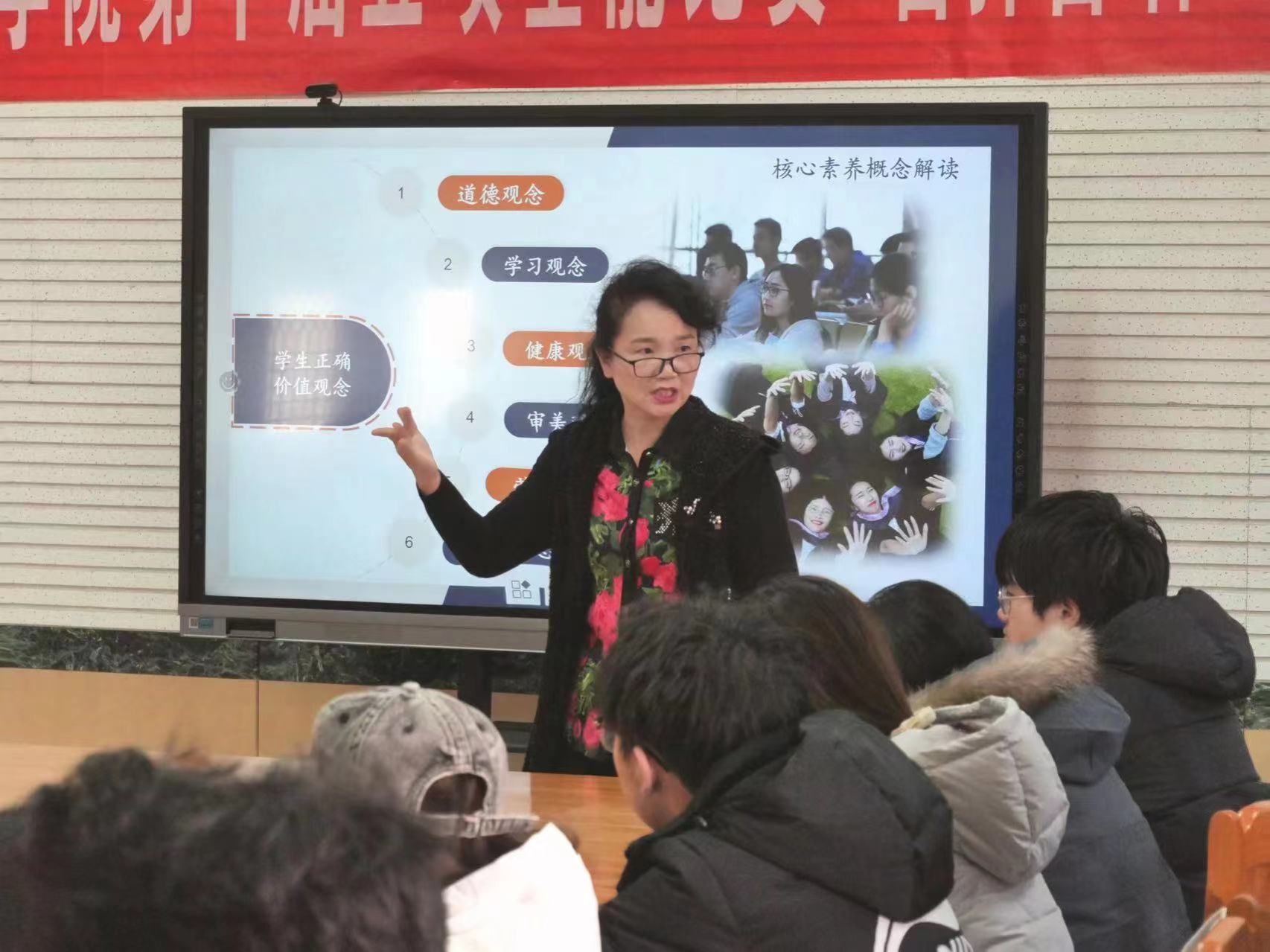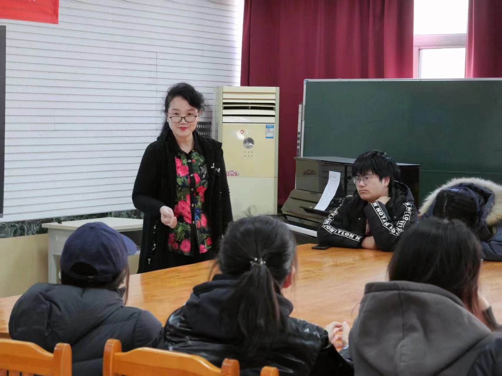 学生进行交流互动,对他们提出的问题逐一解答,并勉励他们在丰富多彩的实践中锻炼自己、成就自己,以优秀音乐教师的标准要求自己,提升师范生的核心素养,做好学业规划,为职业发展奠定坚实的基础。