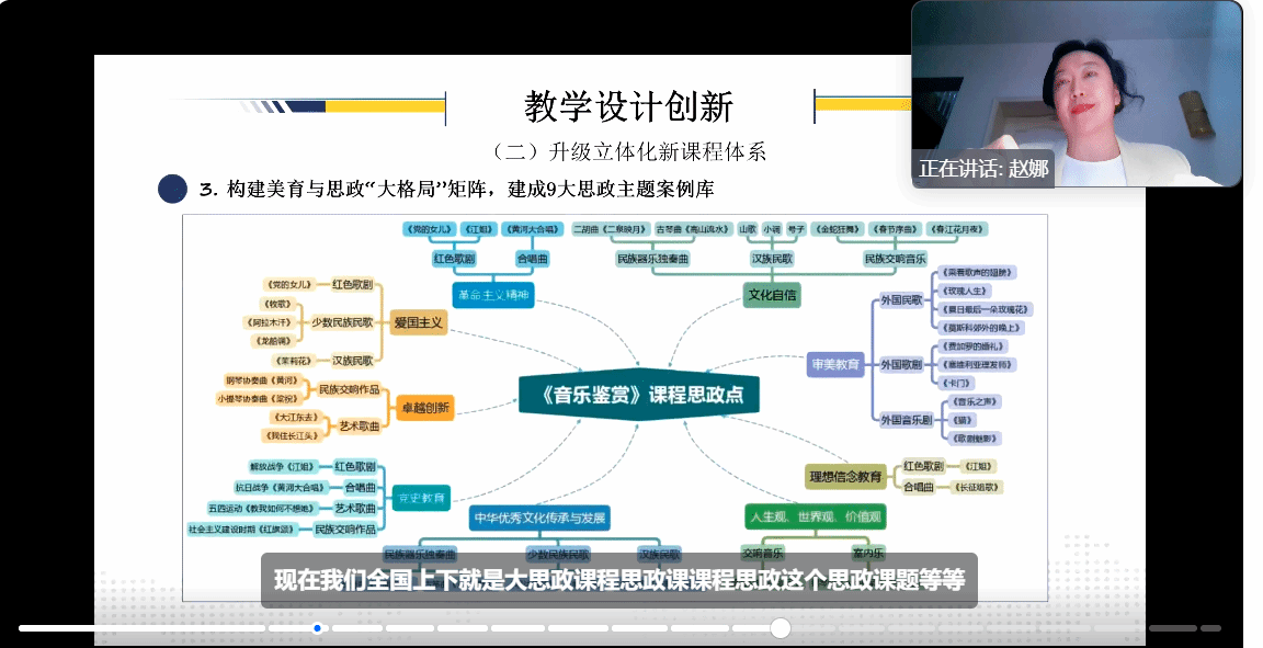 《音乐鉴赏》是赵娜带领团队面向学校全体学生开设的通识课程,经过团队多年的建设与不断创新,打造成混合式教学的优秀范例课程。首先,赵娜对混合式教学从教学资源、评价机制、质量监控、个性化学习路径、技术支持等方面进行系统阐述,并概括构建混合式教学的感受和经验。其次,以《音乐鉴赏》为教学案例,详细阐述“三环联动”教学创新设计的核心理念,即通过“课程内容创新环”、“教学方法创新环”与“评价体系创新环”的紧密联动,构建起一个高效、互动、多元化的教学新生态。最后,赵娜副教授以参加全国高校混合式教学设计创新大赛的切身体会,在参赛材料的准备、参赛视频的录制及专家交流环节等方面分享经验,与会教师在教学创新能力提升方面受益匪浅。