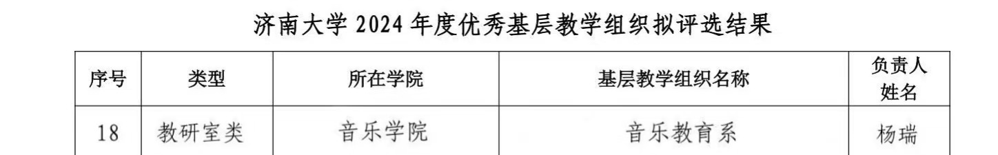 推荐的音乐教育系崭露头角,成功入选济南大学2024 年度优秀基层教学组织。