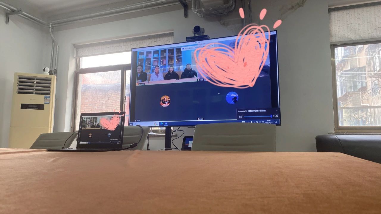 于研讨教室开展“云”家访线上会议,学院党委副书记、副院长董晓宁、学生班主任及全体辅导员参与此次会议。