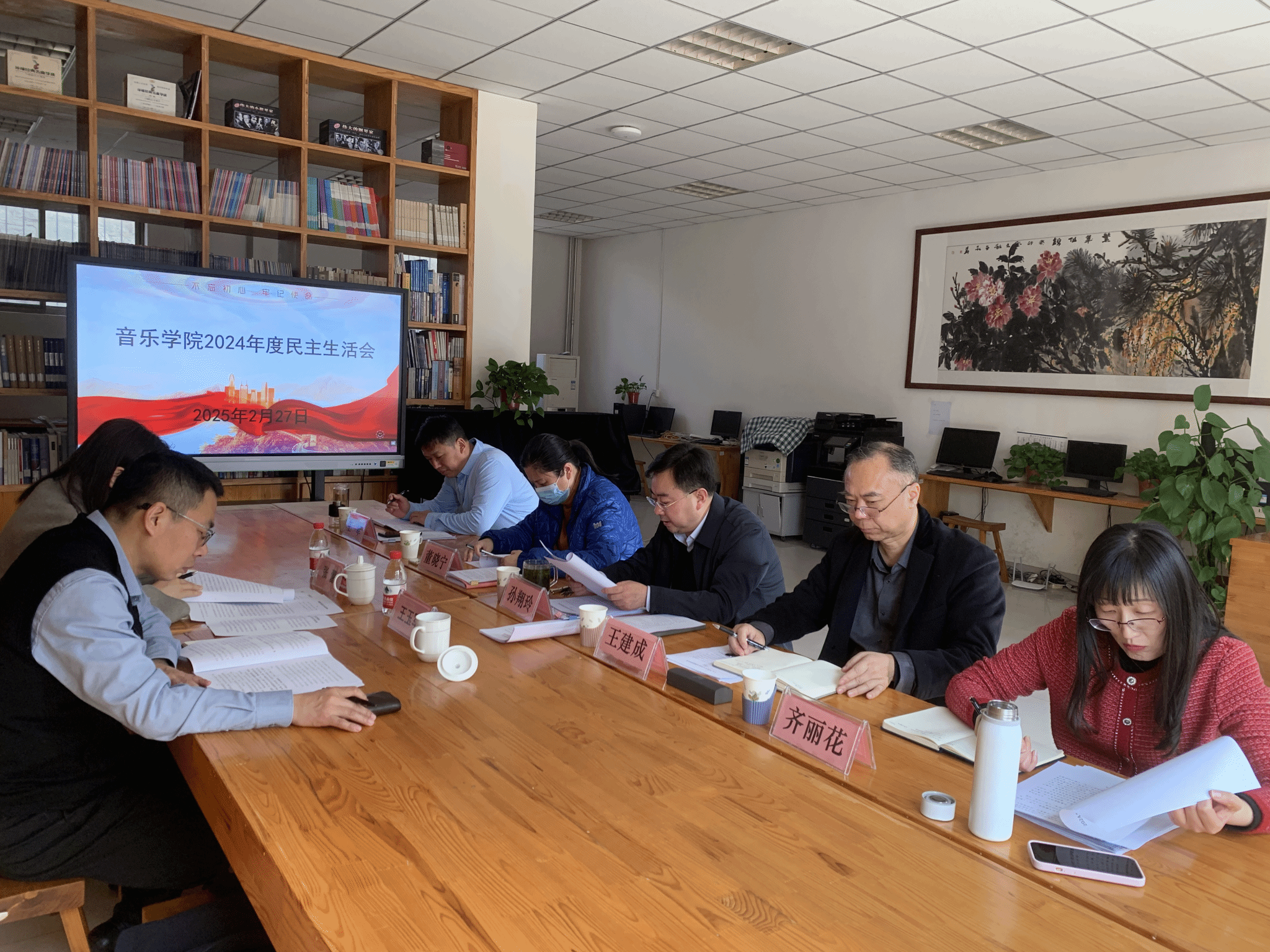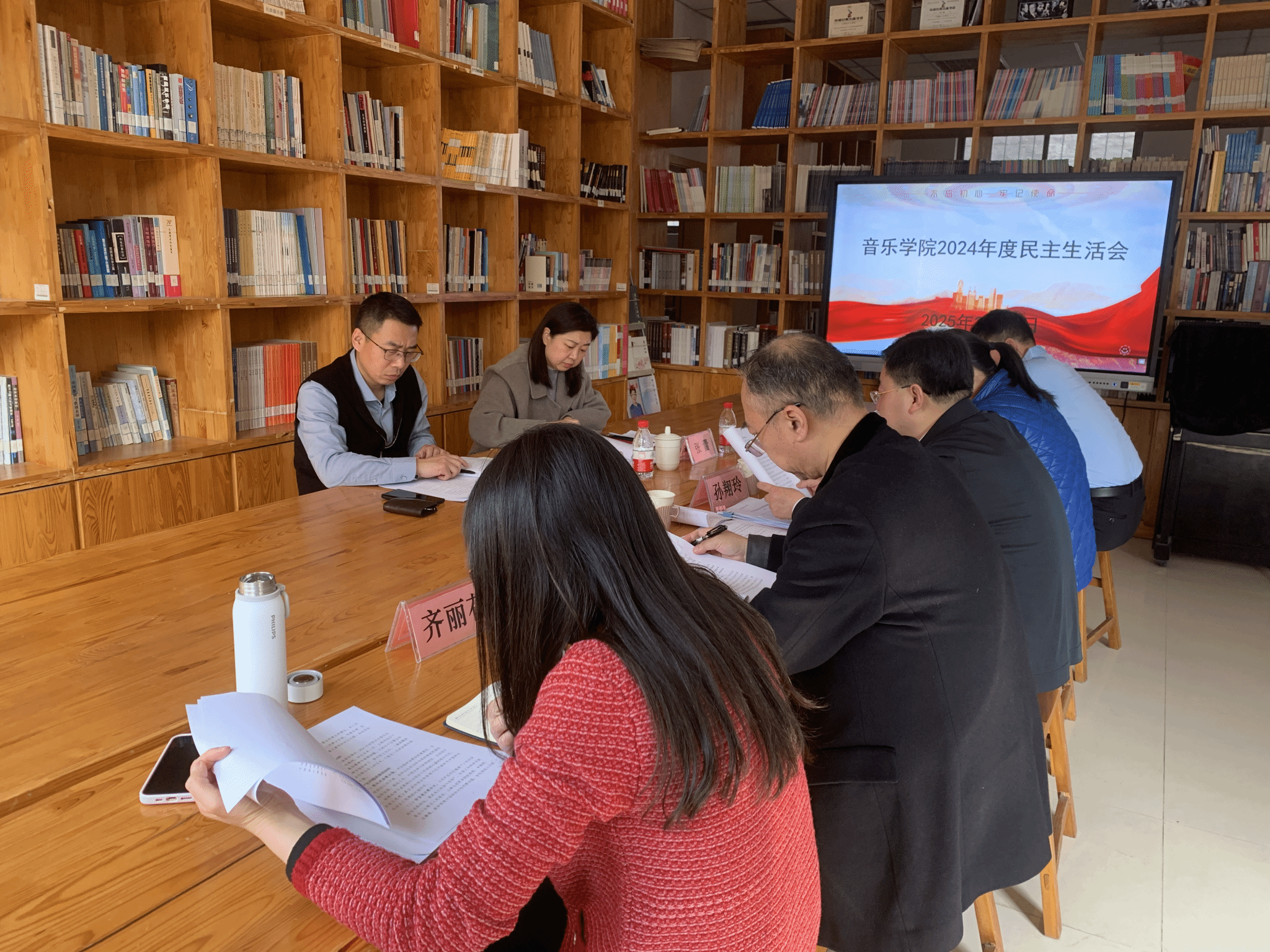 的民主生活会进行点评,对本次专题民主生活会给予充分肯定,班子会议准备充分,问题剖析到位,相互批评犀利,真正达到了交流、批评、团结的活动目的。同时对学院的下一步工作提出了三点要求:一是要制定民主生活会整改工作方案和个人整改清单,统筹推进落实,持续用力整改;二是要提高工作标准,精益求精,力争高质量完成学校的年度考核工作目标;三是根据学院的实际情况,注重创新,打造有音乐特色的学院品牌。