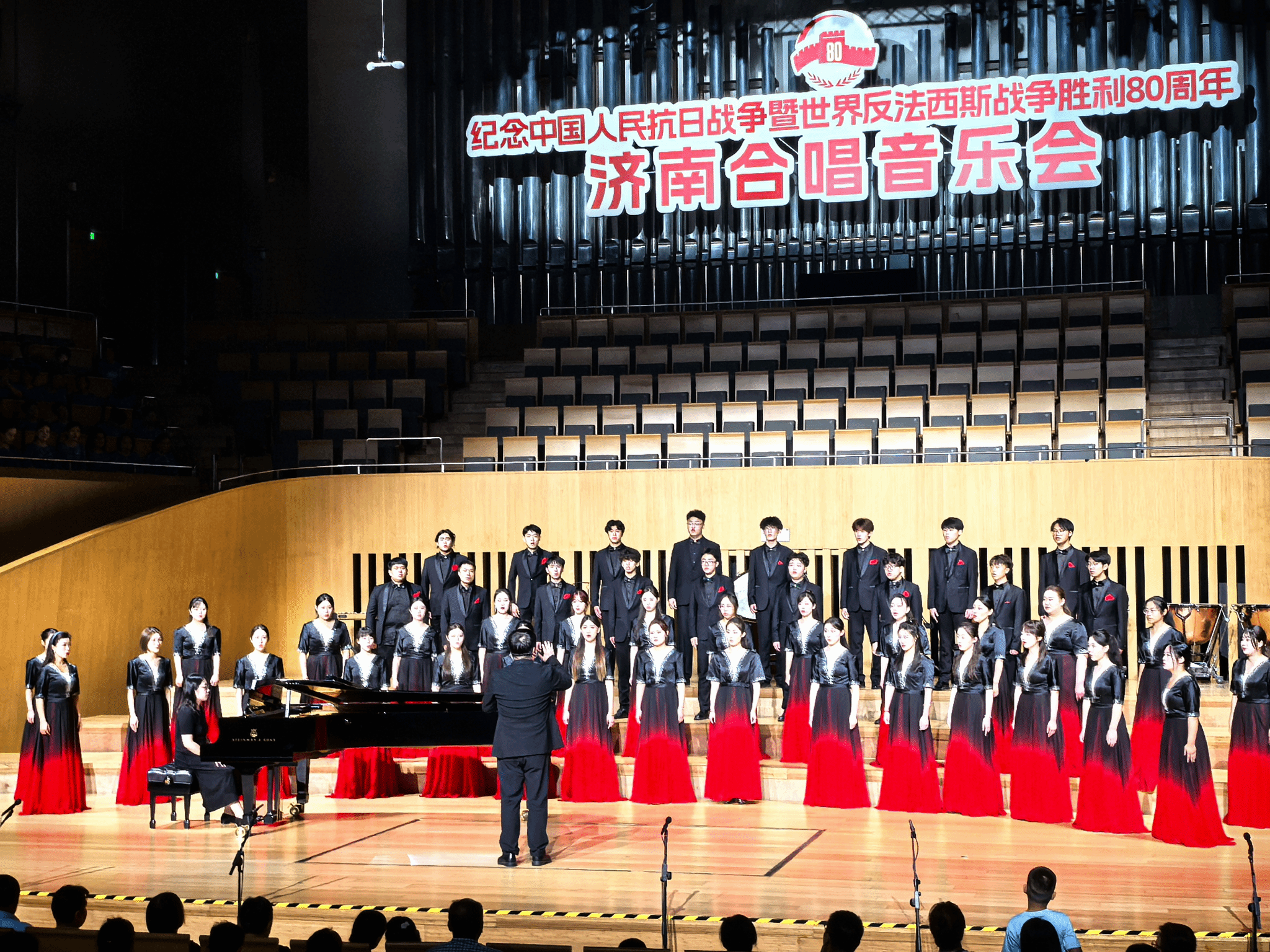 为纪念中国人民抗日战争暨世界反法西斯战争胜利80周年,“铭记历史 珍爱和平”济南合唱音乐会于2025年8月30日在济南隆重举行。本次活动由中共济南市委宣传部、济南市文学艺术界联合会、济南日报报业集团、济南市教育局、济南市文化和旅游局、济南广播电视台联合主办,济南市文艺创作研究院、济南市音乐家协会、山东省会大剧院协办,旨在通过音乐艺术形式回顾历史、弘扬伟大爱国主义精神。我校电子竞技比分