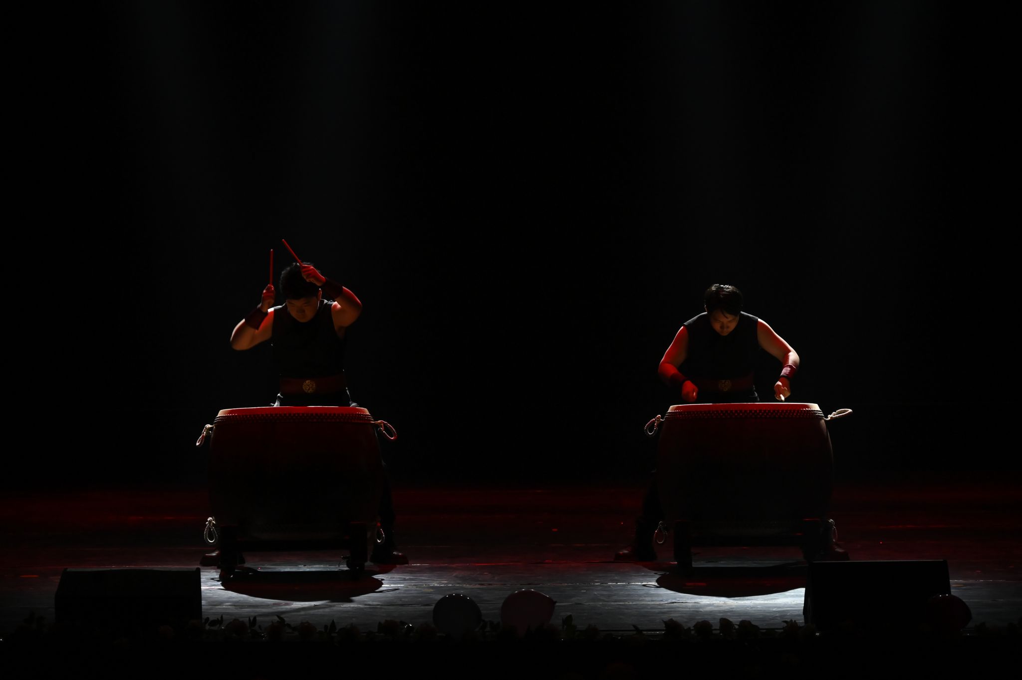 鼓乐表演《牛斗虎》由李星泽、莫博帆倾情呈现。他们通过丰富的打击乐器与多变的节奏,惟妙惟肖地模拟出牛虎相斗的激烈场景,鼓声铿锵,气势磅礴,展现了传统音乐的非凡活力。