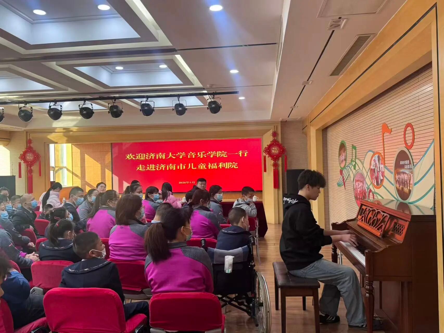 师生在学院党委副书记董晓宁、副院长齐丽花带领下,走进济南市儿童福利院,以专业特长传递温暖,用真挚陪伴守护童心。同学们为福利院送来了钢琴保养维护、暖心文艺演出、晚会节目编排等温暖服务,以实际行动践行着电子竞技比分
