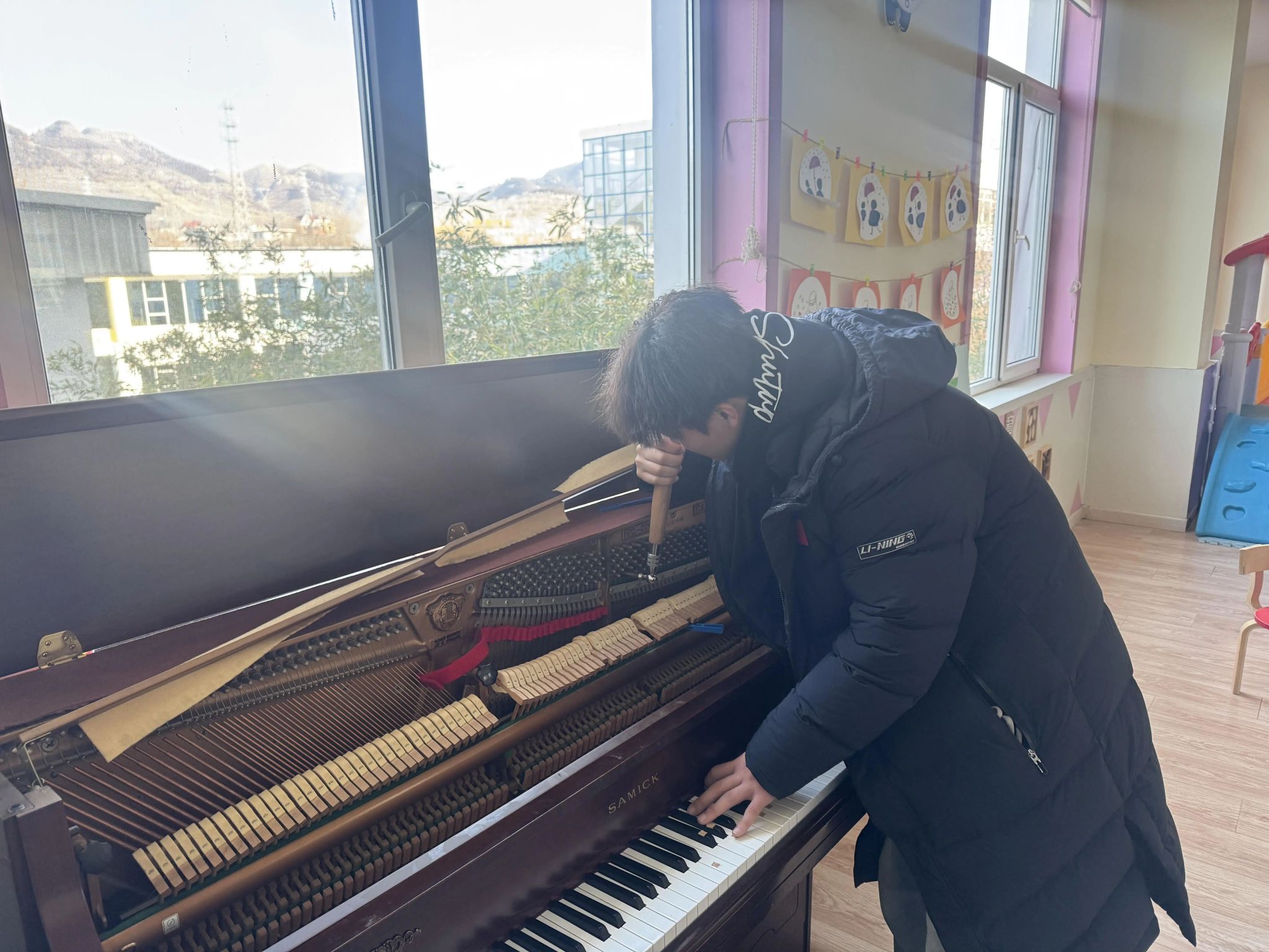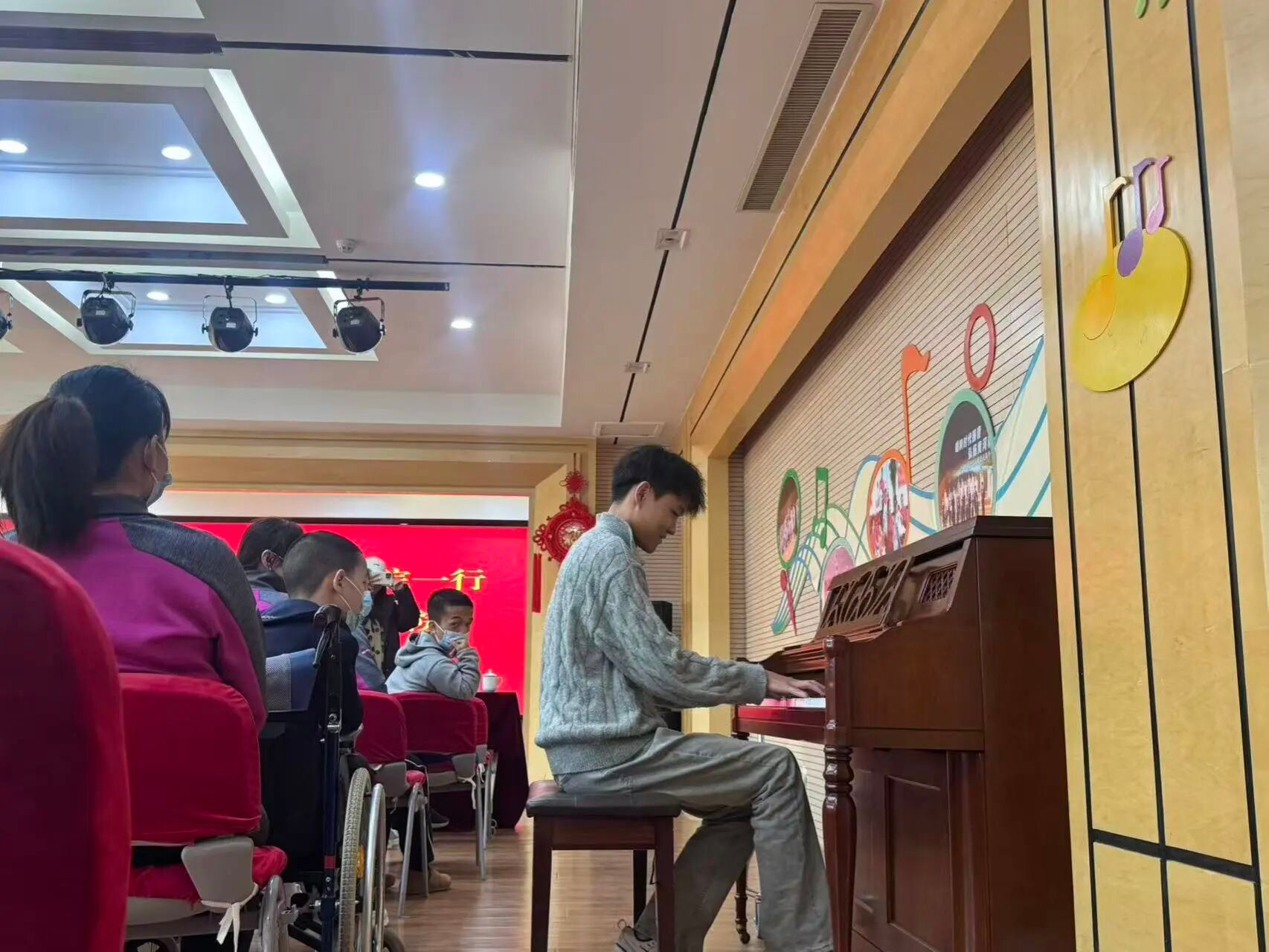 演出结束后,调律专业学生深入教室,为每台钢琴进行全面检测与精准调音;打击乐学生为儿童福利院春晚节目进行指导;带队老师则与福利院领导就美育实践基地建设、社会志愿服务等方面进行深入交流,并对双方共建实习实践基地、助力学生音乐梦想等议题达成初步共识。