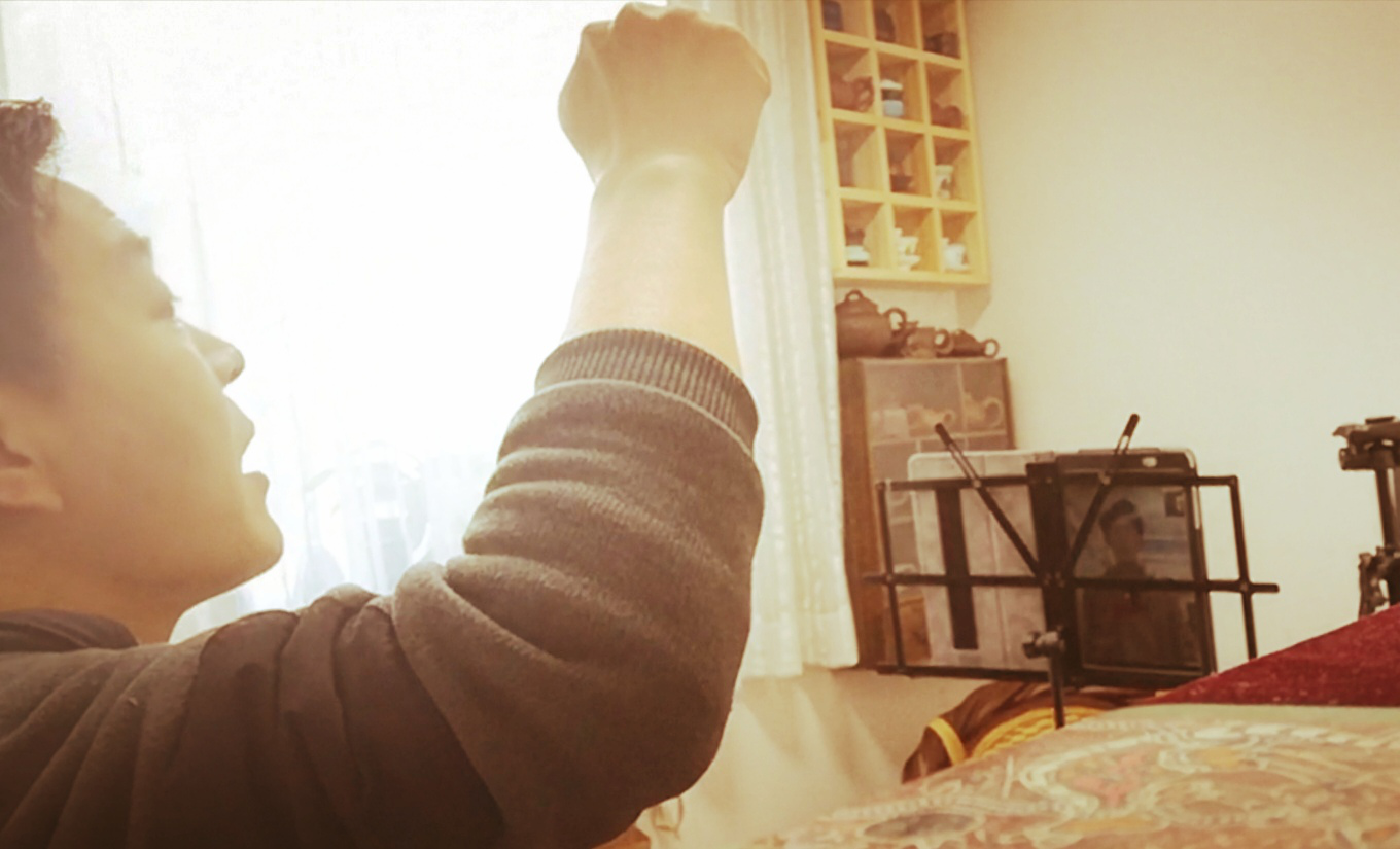 “舍我小家,顾全大家”——舞蹈系系主任王海潮老师主要教授古典舞基础训练等课程。为了更好地给学生示范舞蹈动作,他早早地就将沙发、桌子统统挪走,腾出展示空间。不仅“剥夺”了家人在客厅休憩娱乐的地方,甚至还将5岁的女儿送到了邻居家照看,以便达到最好的课堂效果。