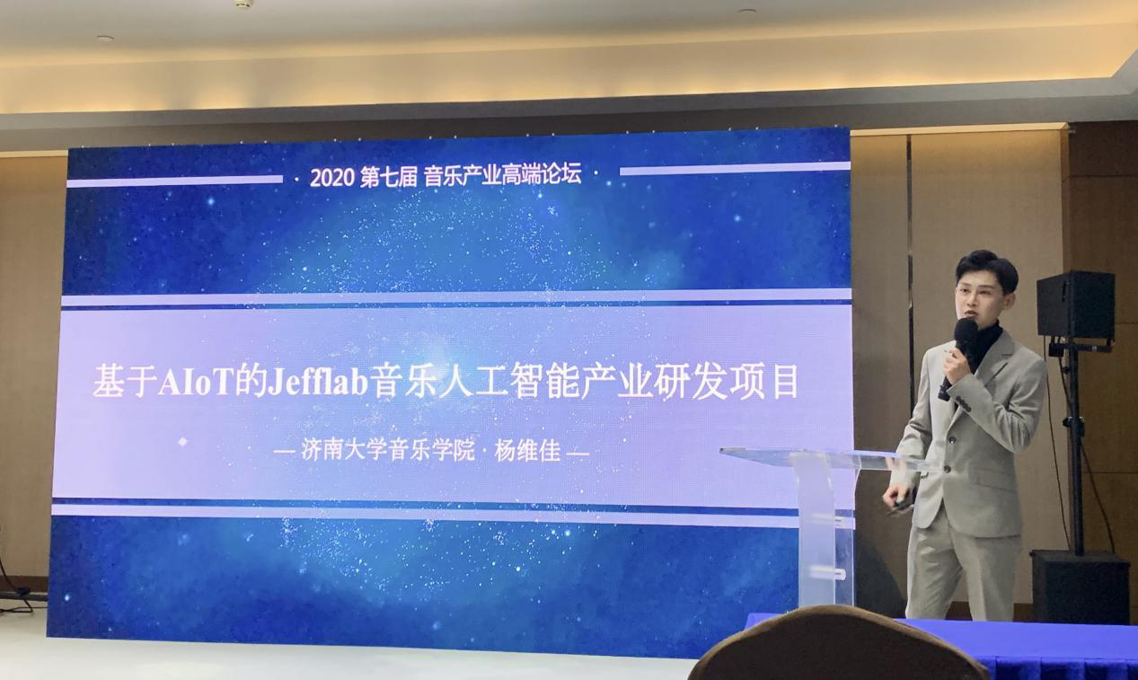 研究生杨维佳在“数字时代的音乐传播”学术分论坛部分进行了《基于AIoT的Jefflab音乐人工智能产业研发项目》的主旨发言,以音乐人工智能产品界定、AIoT三大产业方向与团队背书三部分为主轴,结合音乐人工智能产品演示与项目重难点核心技术剖析,从Jefflab产品出发,充分展示了人工智能音乐实验室研究成果如何在市场应用端口的落地。此研发项目是在电子竞技比分