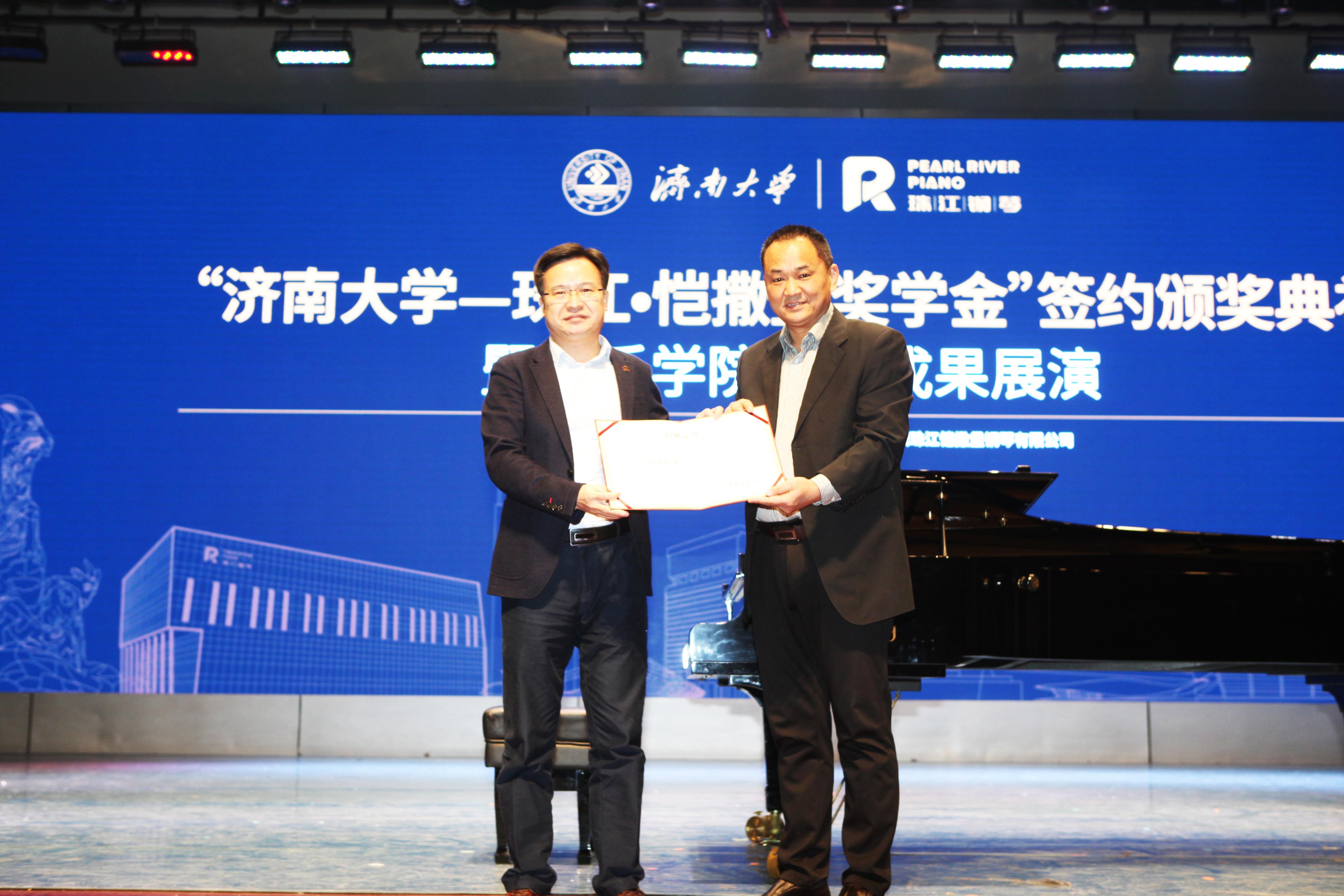 广州珠江钢琴集团作为中国乐器行业龙头企业,具有国际先进水平的产品创新能力和全球最具规模的钢琴产销能力,同时大力支持音乐教育事业,在全国80余所高等院校设立奖学金。“济南大学—珠江•恺撒堡奖学金”的设立开启了珠江钢琴集团与我校进一步加强校企合作、人才培养的崭新篇章,也为同学们的学习生活增添了动力,激励学生一心向学,创先争优,也充分发挥优秀学子的示范作用,树立蓬勃向上的风气,使优良学风深入人心。