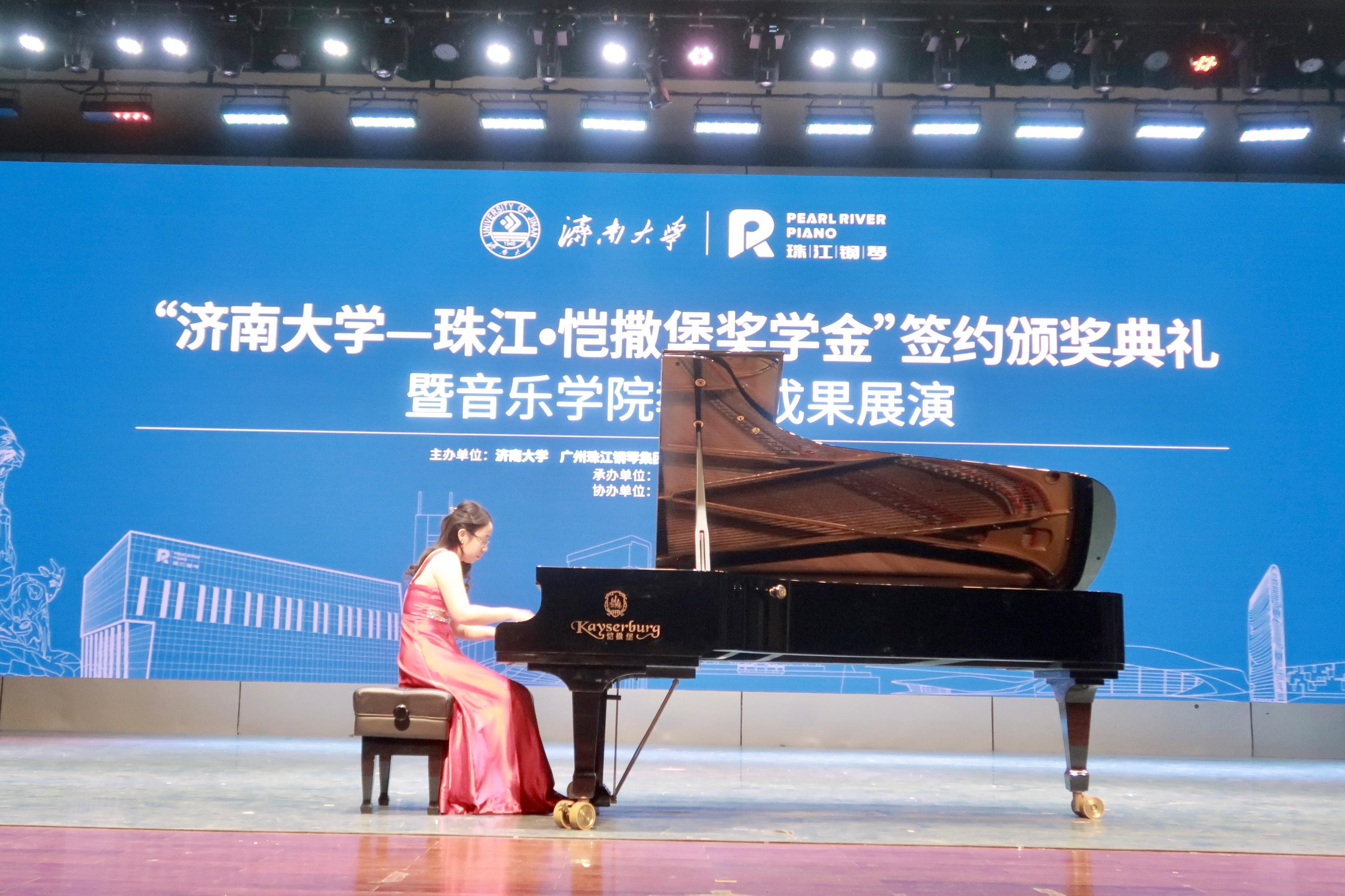 教学成果展演在大礼堂隆重举行,济南大学党委副书记张硕秋、广州珠江钢琴集团股份有限公司副总经理陈宣德出席活动并讲话,党委学生工作部(处)、合作发展处、团委相关负责人以及电子竞技比分