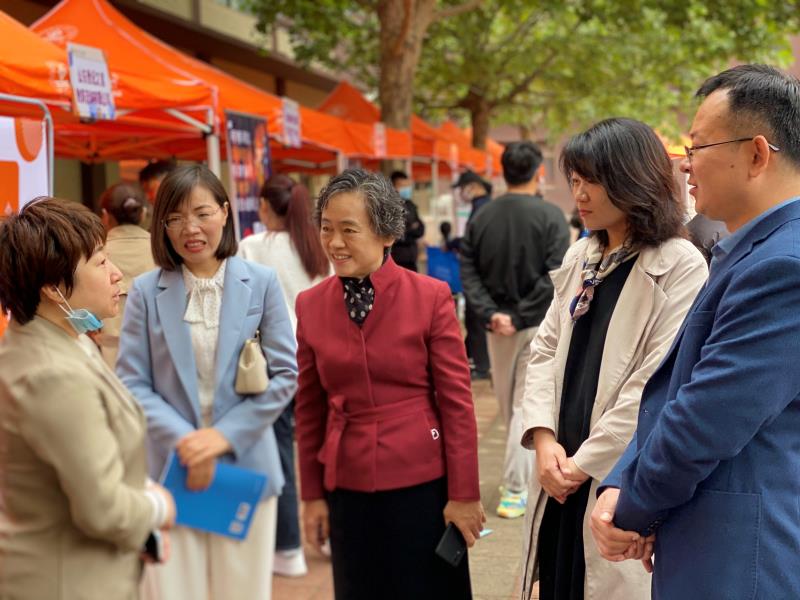 招聘会现场,张硕秋副书记一行与参展单位进行了深入交流,了解企业发展和人才需求情况,听取用人单位对学校人才培养工作的意见和建议,向关心、支持学校发展的企业单位表示感谢。
