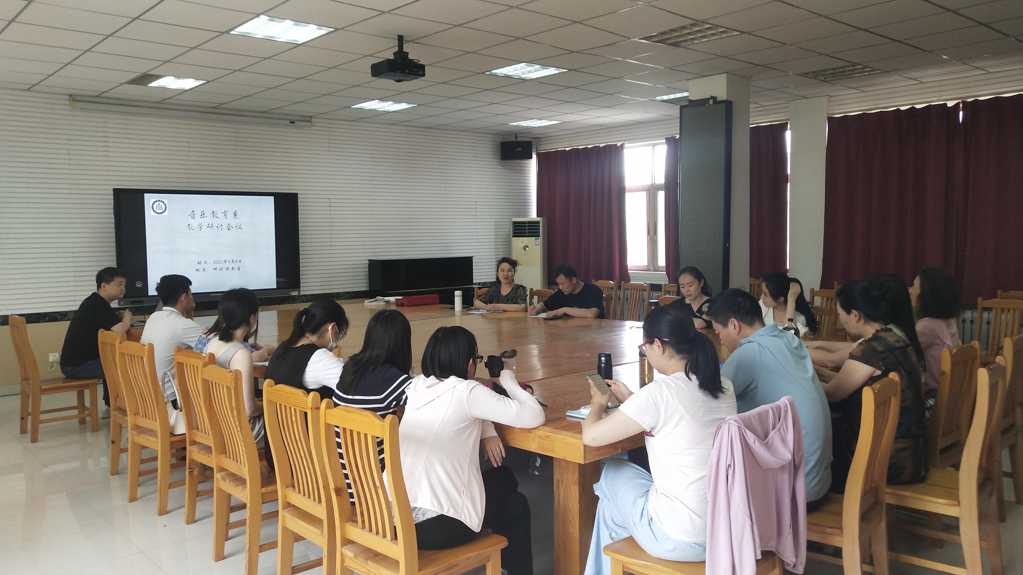 68日下午,音乐教育系在研讨课一教室召开教学研讨交流会,会议由音乐教育系负责人杨瑞教授主持,理论系教师参加了会议。