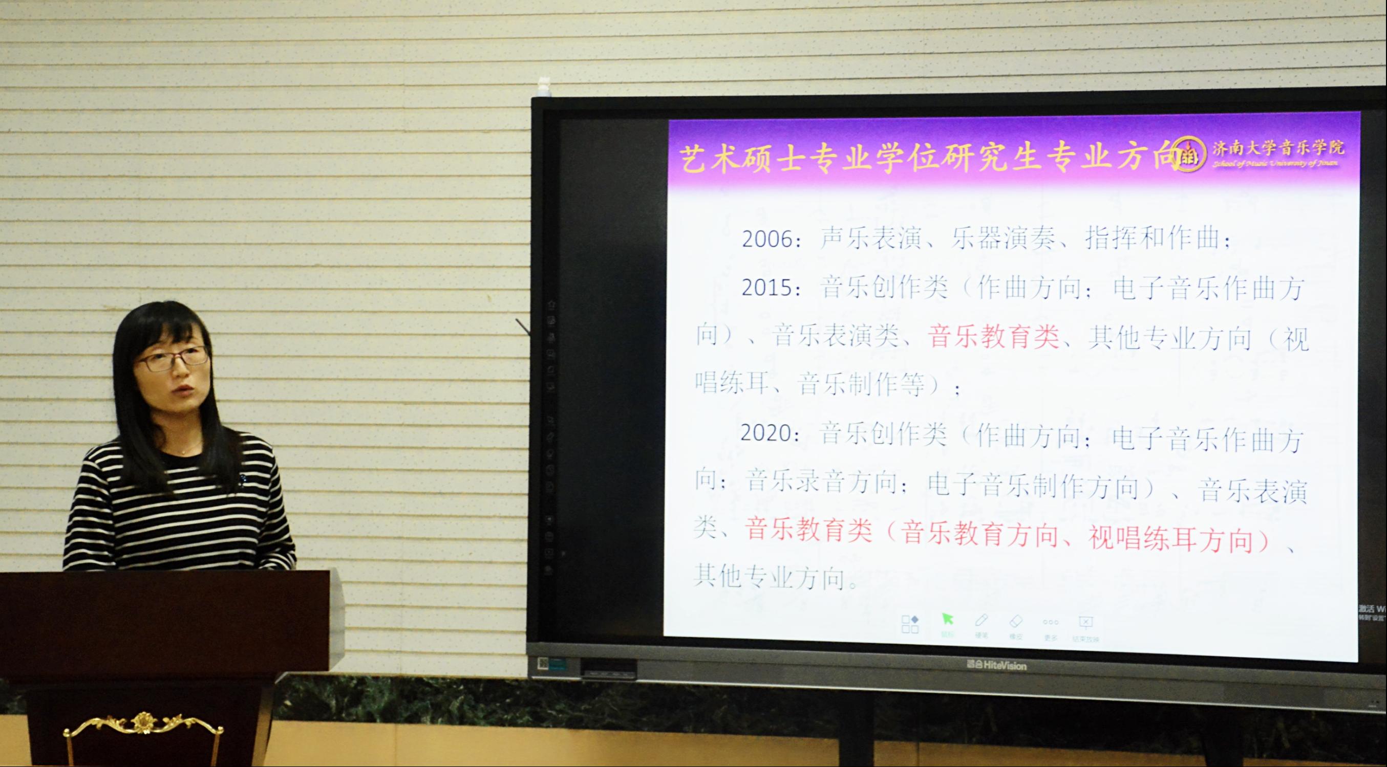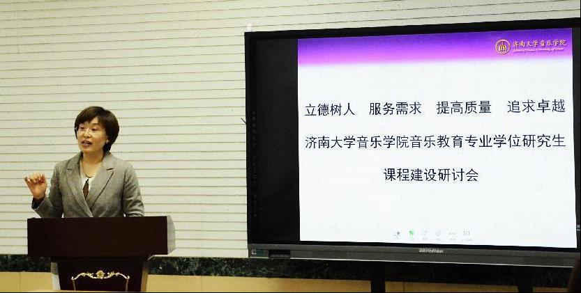 艺术硕士专业学位研究生人才培养存在的问题等方面,结合此次研讨会主题进行了总结,她指出:在立德树人的根本要求下,首先,学生走向社会“德”是根本,同学们要在学习中形成良好的品格;其次要了解当下音乐教育专业的发展现状,作为导师要不断提升自己的综合素质才能满足学生的各方需求,进而满足社会对人才的需求。授课教师所教授的每一门课程,都应以学生为中心,及时发现问题,并通过教学改革及时解决问题;第三,要明确实践是专业学位学生最重要的法宝。紧跟时代需求,通过多元形式,锻炼和培养学生的教学能力、实践能力、协作能力及创新能力。希望通过此次研讨会,大家能够认真研究并充分发挥综合性大学在音乐教育专业人才培养方面的优势,通过课程改革,不断追求卓越,使学院音乐教育专业学位研究生得到高质量、有特色的发展。