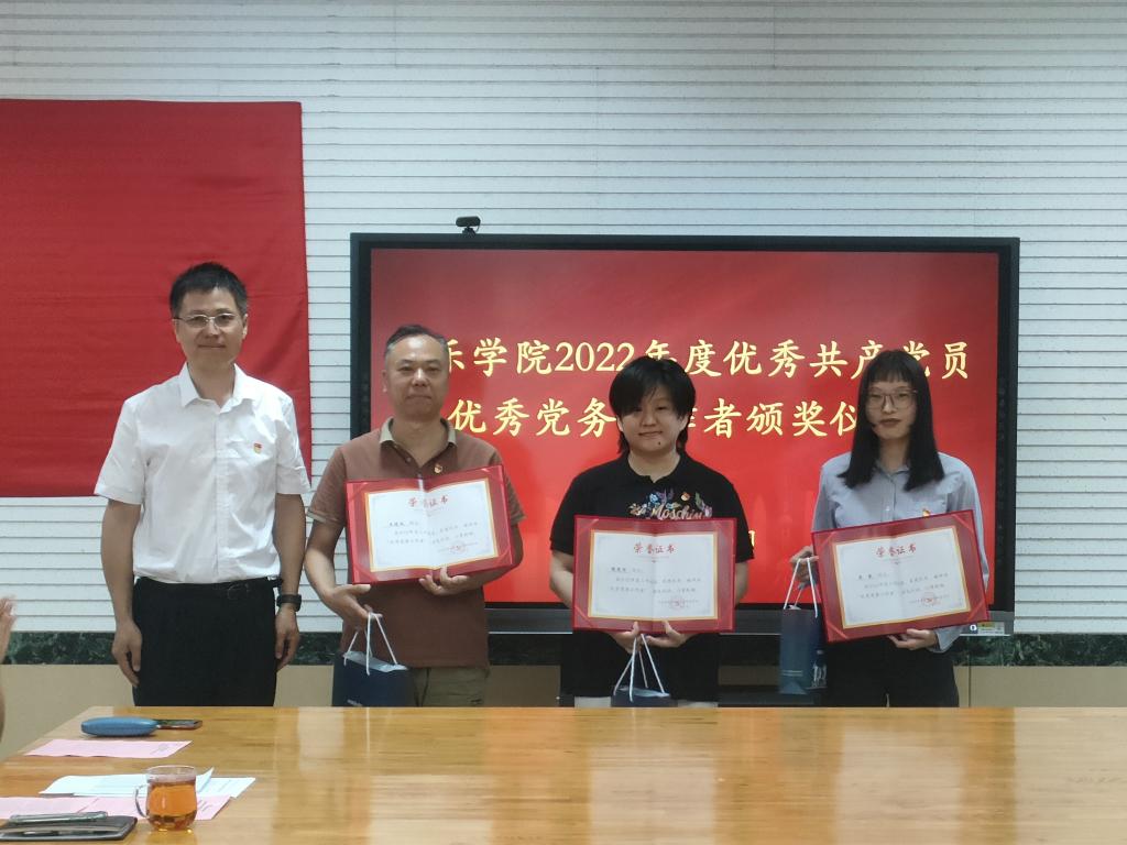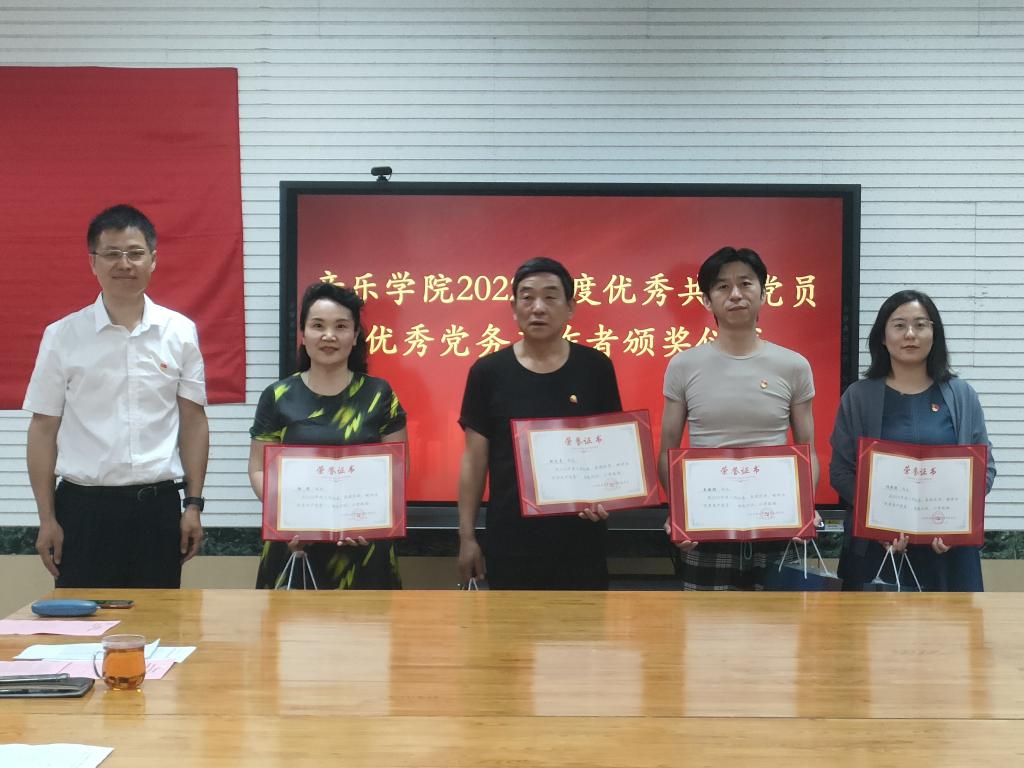 会议首先对2022年度表现突出的18优秀员和4名优秀党务工作者了表彰。学院党委副书记、副院长郝伟宣读表彰决定,学院党委书记刘振为受表彰党员颁发了证书和学习用品。受到表彰的优秀党员代表杨瑞和优秀党务工作者代表吴爽分别交流发言,向参会党员讲述了他们立足本职岗位、用心用情用力践行使命担当的先进事迹、分享了工作学习中的心得,并一致表示作为一名光荣的共产党员,他们将一如既往地履行党员职责,服务广大师生,用实际行动不断践行对党和人民的忠诚。