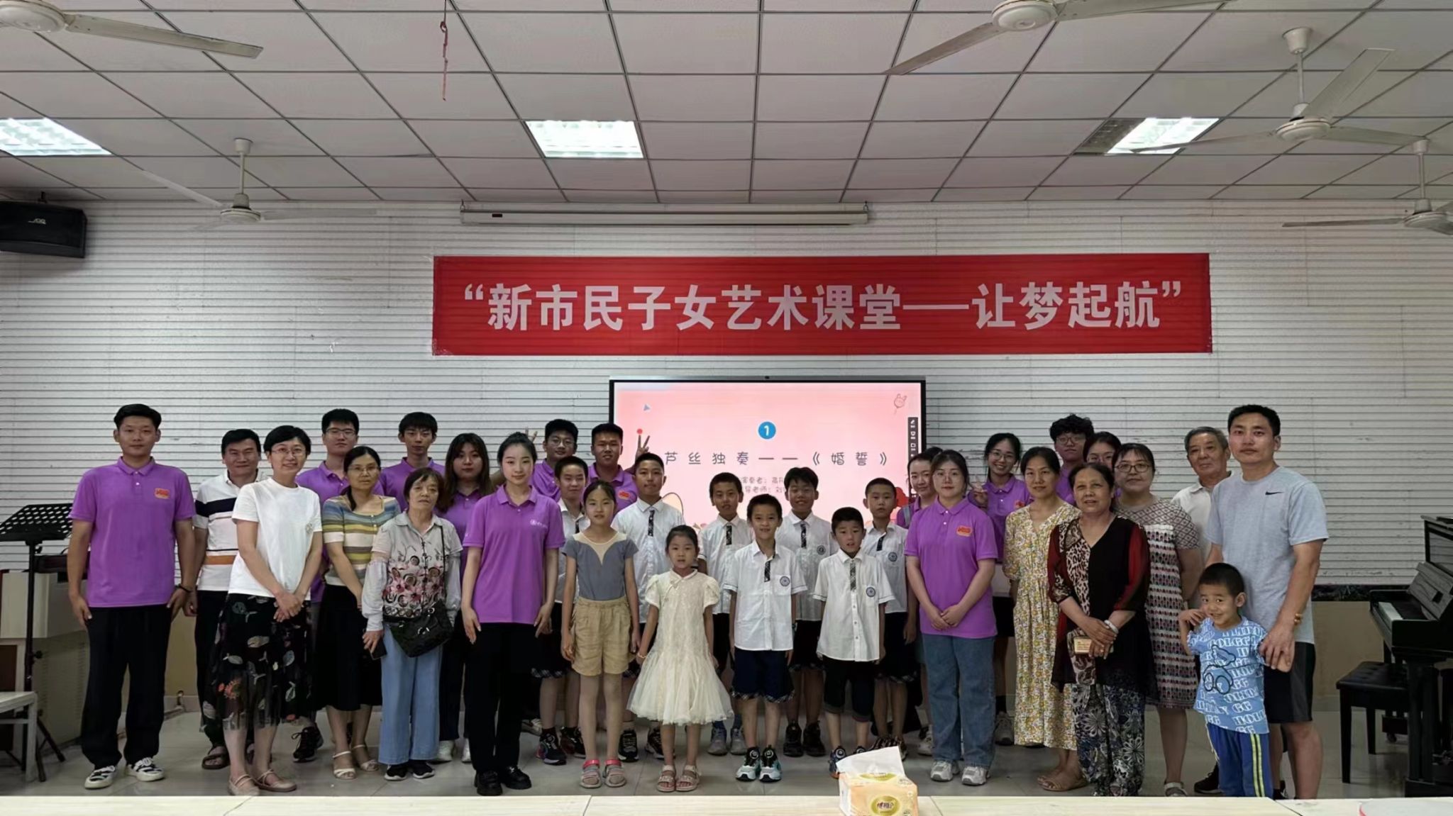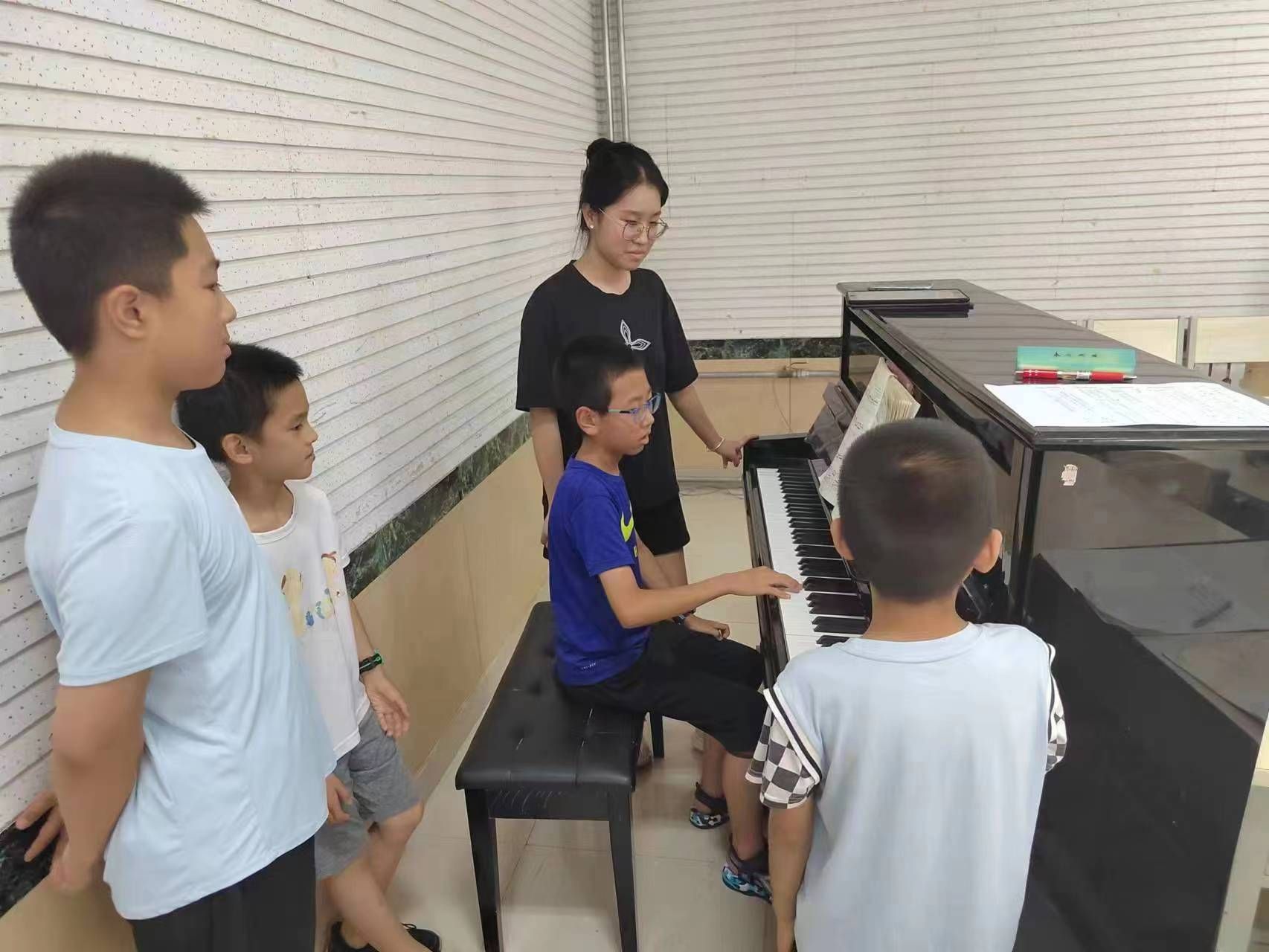 提供的良好的教学场所和优质的教学设施,组成了理论组、声乐组、器乐组、钢琴组、舞蹈组,免费开展舞蹈、音乐、钢琴、器乐等艺术教育。其中,理论包括音乐理论知识讲解与鉴赏,舞蹈包括基本功练习与小剧目排演,声乐包括声乐发声教学与合唱教学,器乐包括器乐知识讲解、 器乐指导等课程。充分发挥了队员专长,丰富了新市民子女的暑期生活,促进他们更好地成长。
