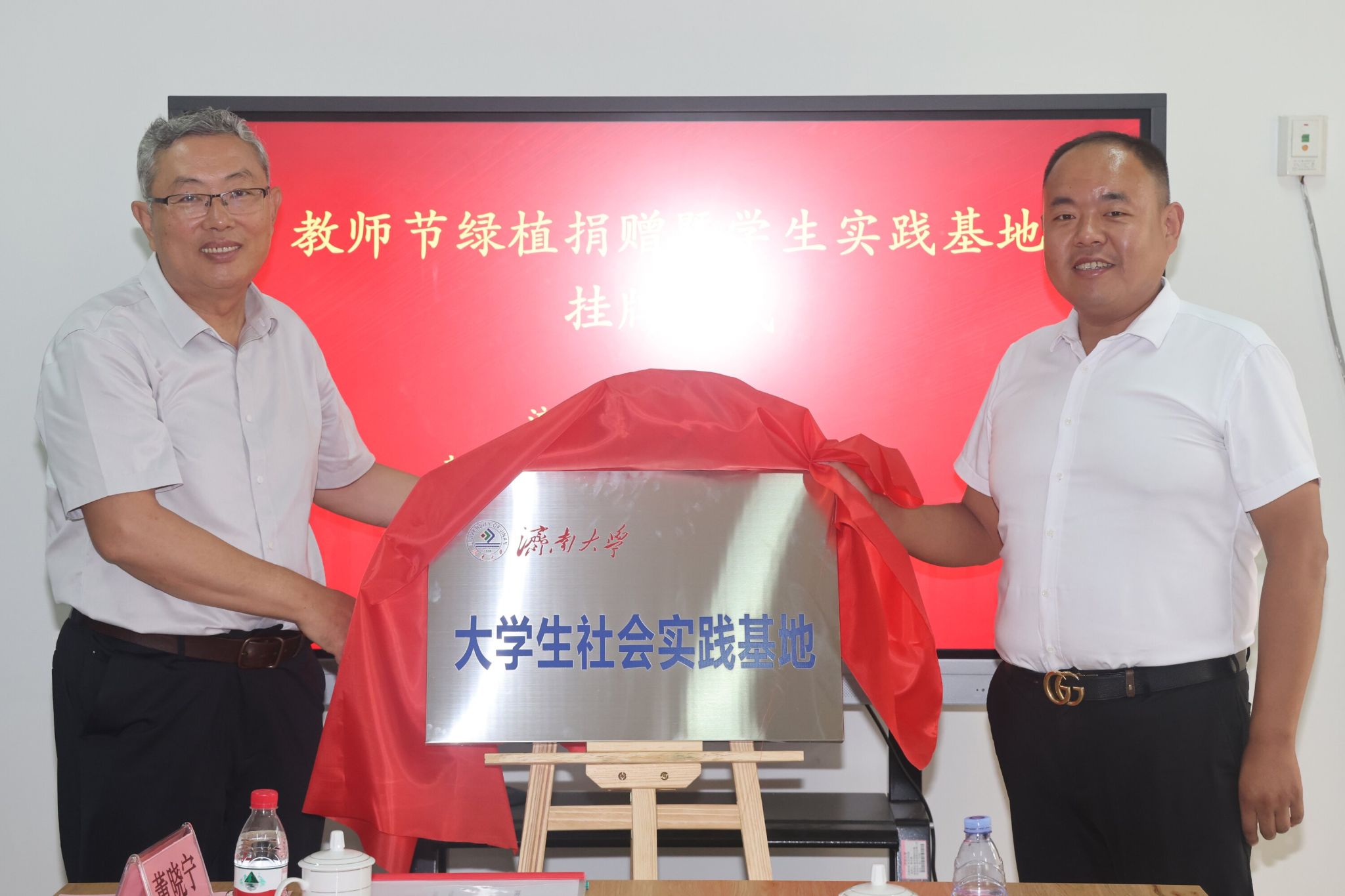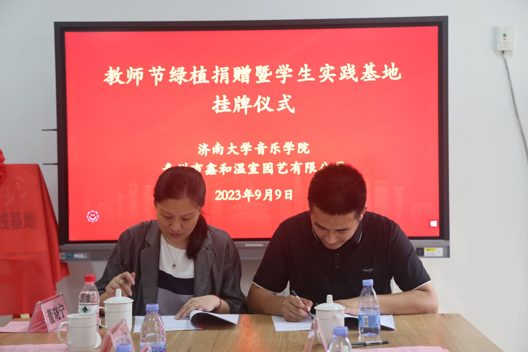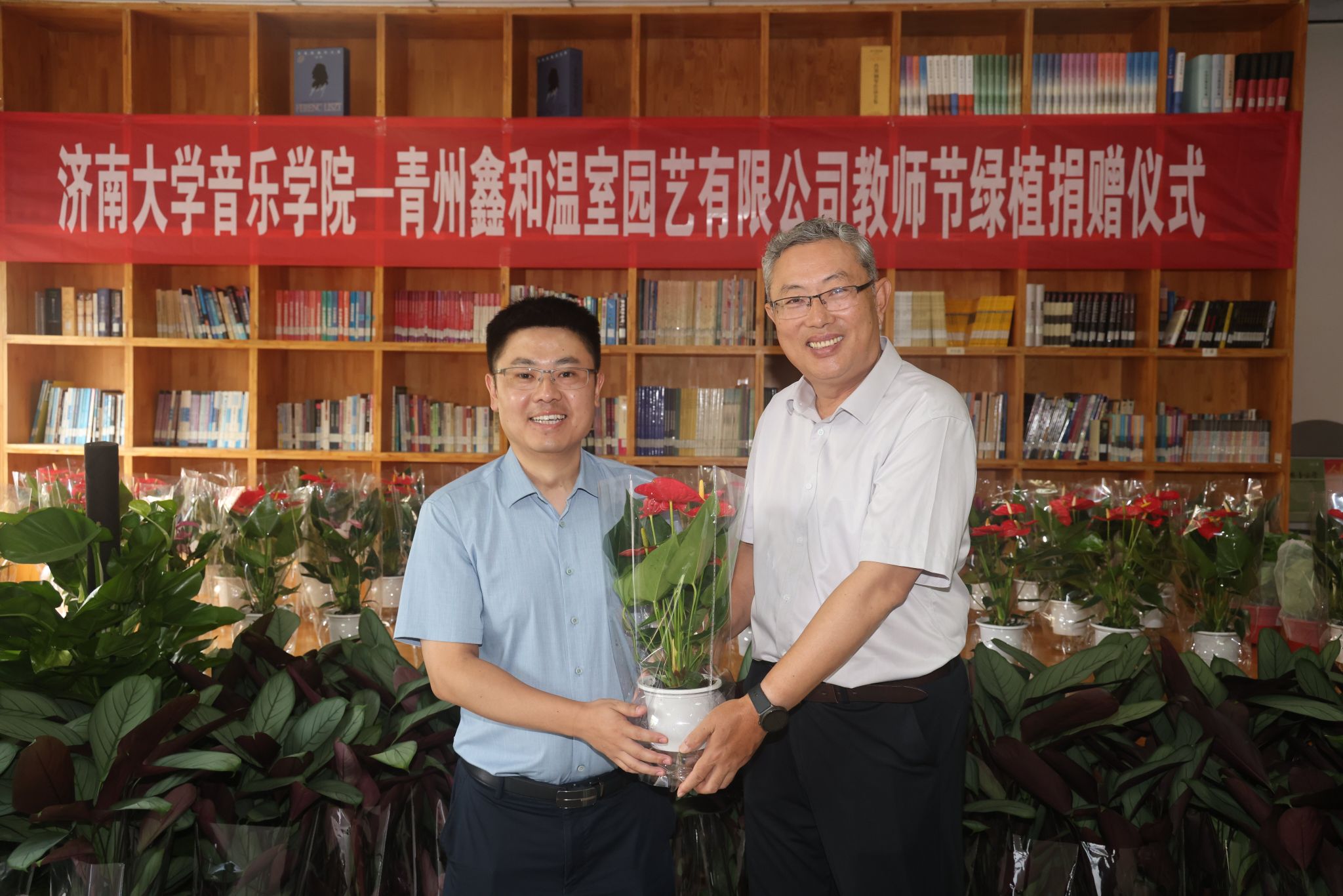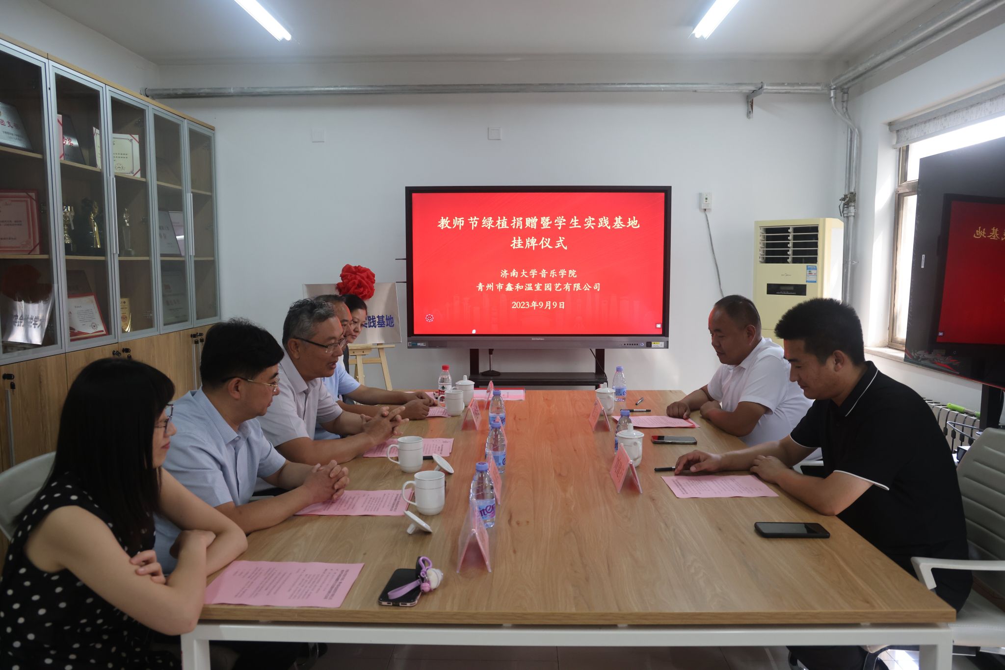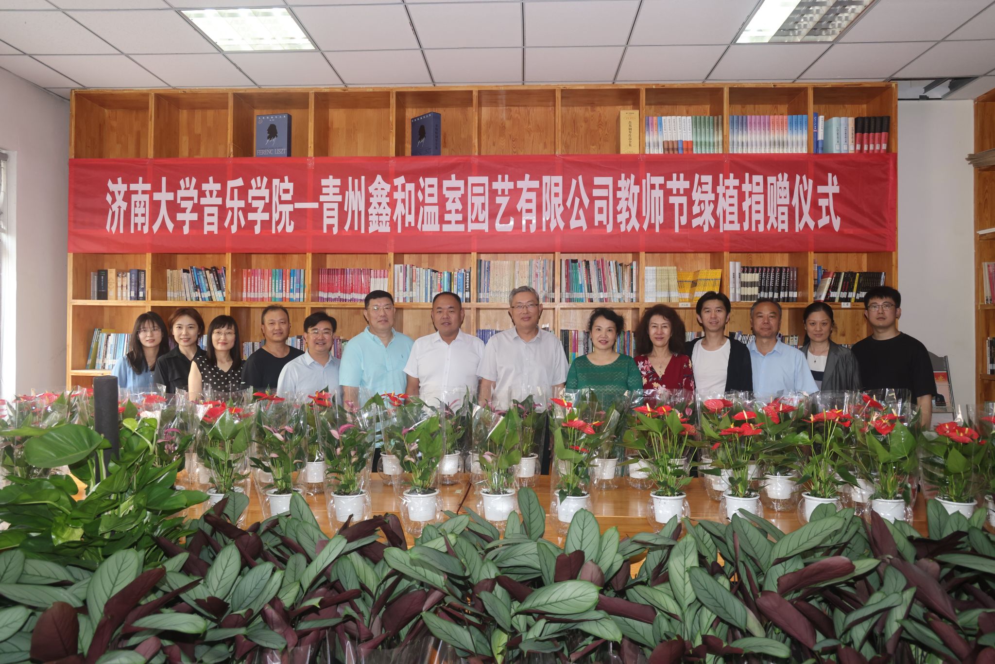 与青州鑫和温室园艺有限公司举行教师节绿植捐赠暨大学生实践基地挂牌仪式。济南大学党委常委、副校长张勇,青州鑫和温室园艺有限公司董事长赵远涛、青州鑫和温室园艺有限公司经理刘建行、365电竞比分网