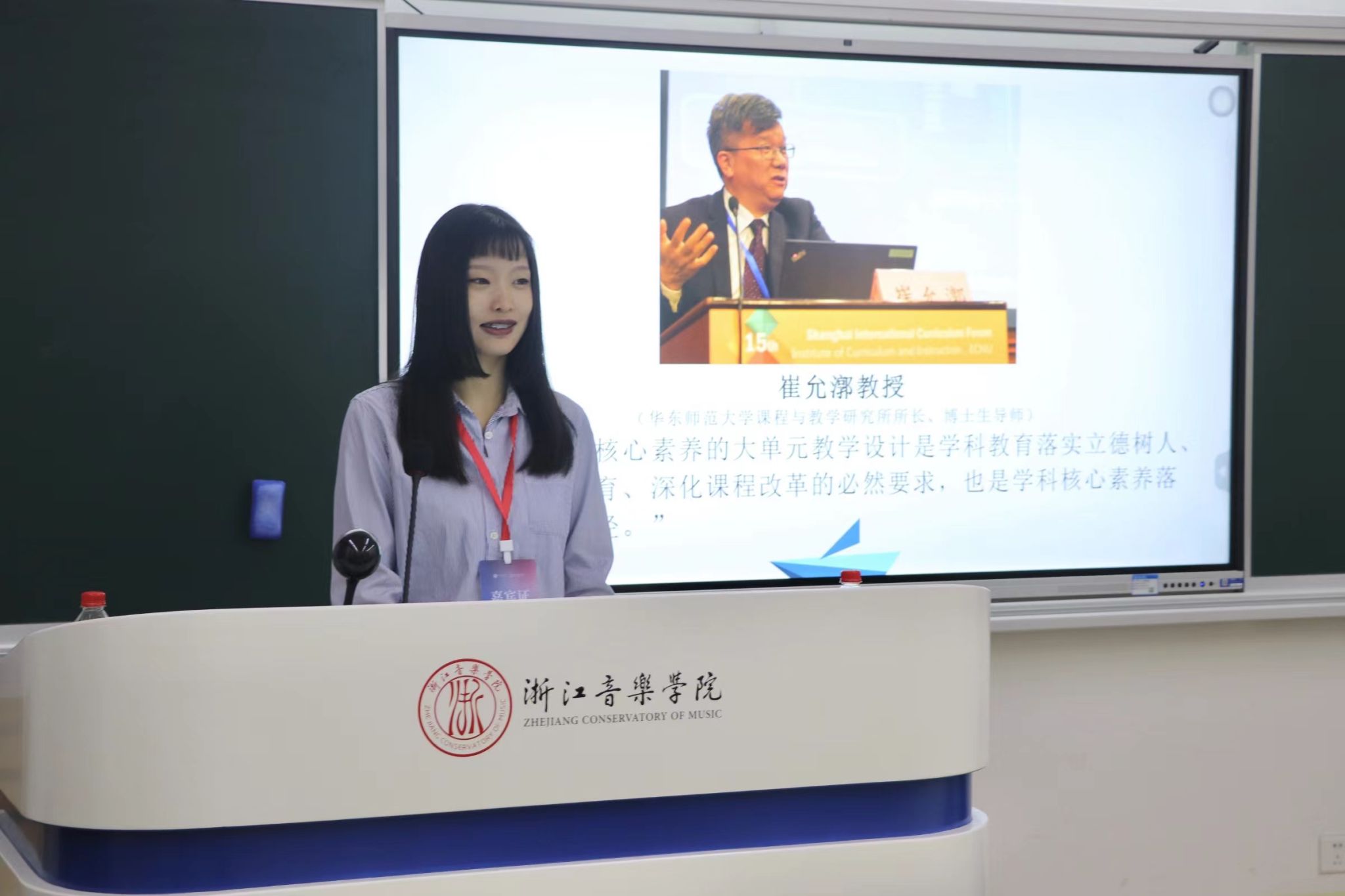 2021级音乐教育方向研究生吴爽投稿的论文《国内音乐大单元教学研究现状综述》经专家评审,在高校学生组论文评比中脱颖而出,受邀在高校学生论文宣讲专场中,进行主题发言。吴爽从国内音乐大单元教学的相关文献分布、理论研究与实践研究三方面研究现状进行梳理,提出未来研究要切实理清大单元概念、统建知识架构;增强理论研究、推动团队建设;推动音乐大单元教学模式落地实施等美好愿景。吴爽同学的选题新颖,逻辑清晰,获得与会代表与专家的高度肯定,显示了电子竞技比分
