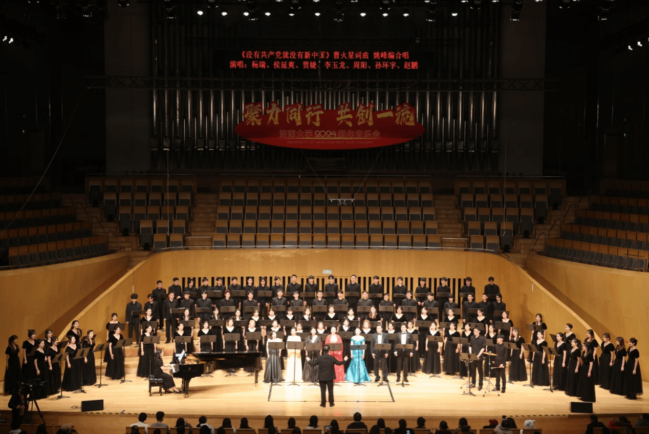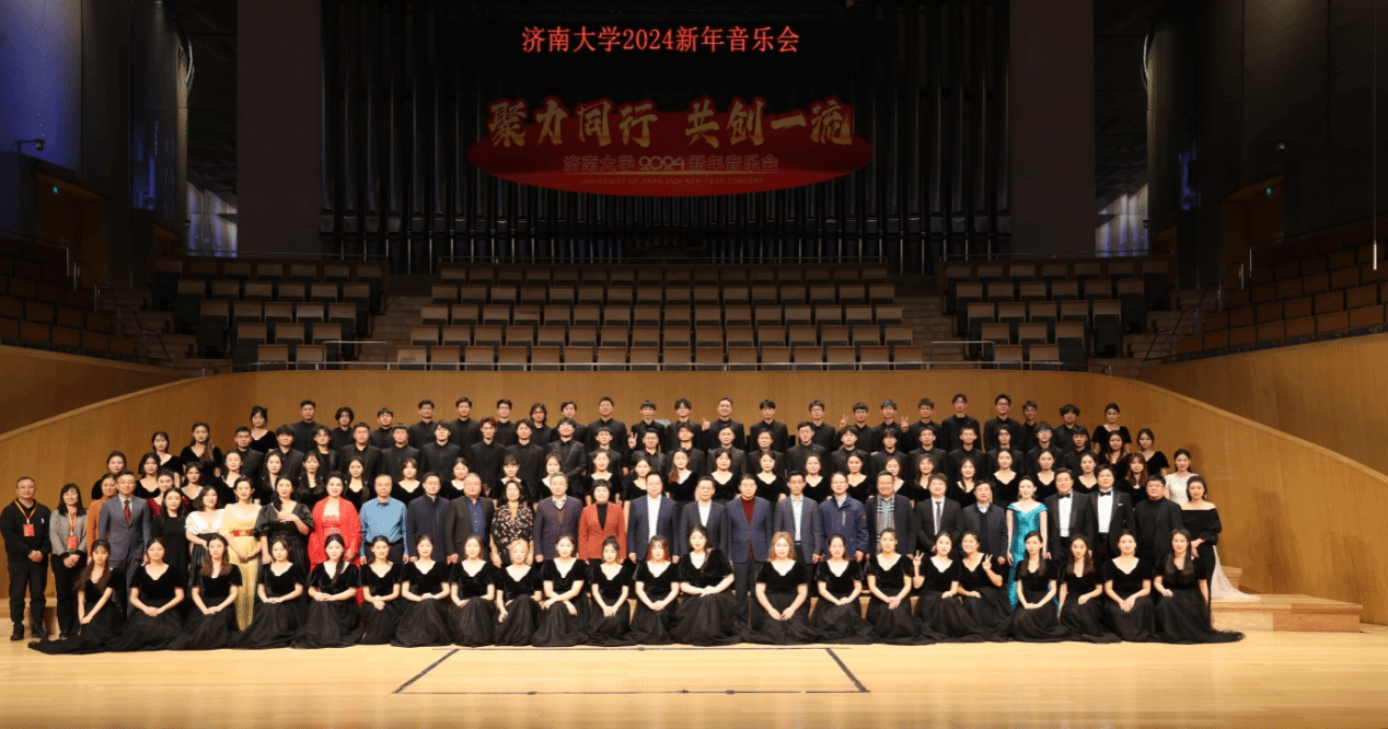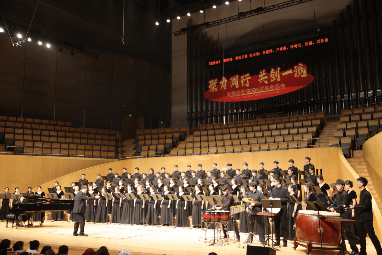 12月27日晚,济南大学 “聚力同行, 共创一流”2024新年音乐会在山东省会大剧院举行,在辞旧迎新之际,给大家奉献了一场精彩绝伦的合唱盛宴。济南大学党委书记刘春华、校长刘宗明等校领导与近千名师生校友和社会各界群众出席音乐会。