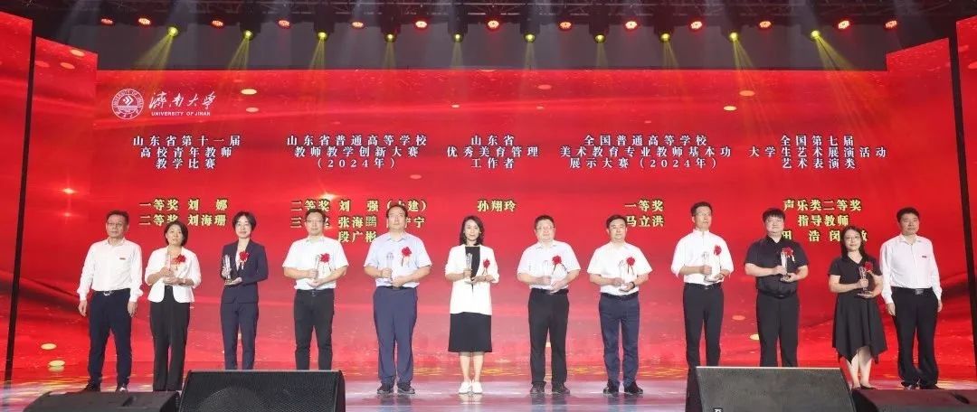 多位教师因在教学、科研以及指导学生方面取得的卓越成就而受到表彰。学院党委书记孙翔玲荣获“山东省优秀美育管理者”荣誉称号,学院副院长王建成荣获山东省第三十六届社会科学优秀成果一等奖,田浩、闵小敏两位教师荣获“全国第七届大学生艺术展演活动艺术表演类声乐类二等奖指导教师”,李东方、杨阿红两位教师荣获“济南大学优秀教师”等荣誉称号。