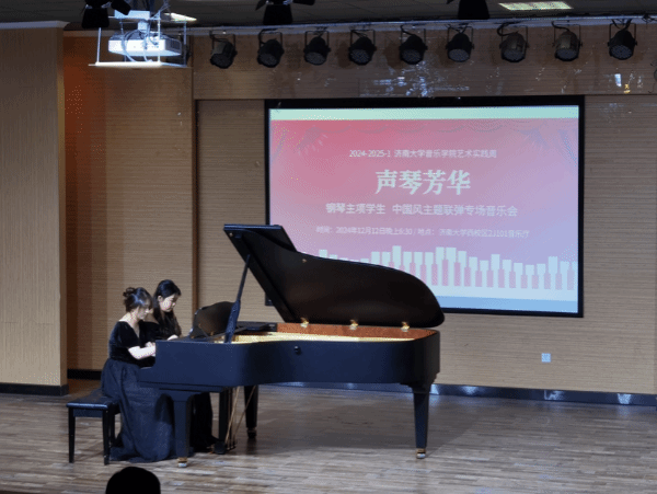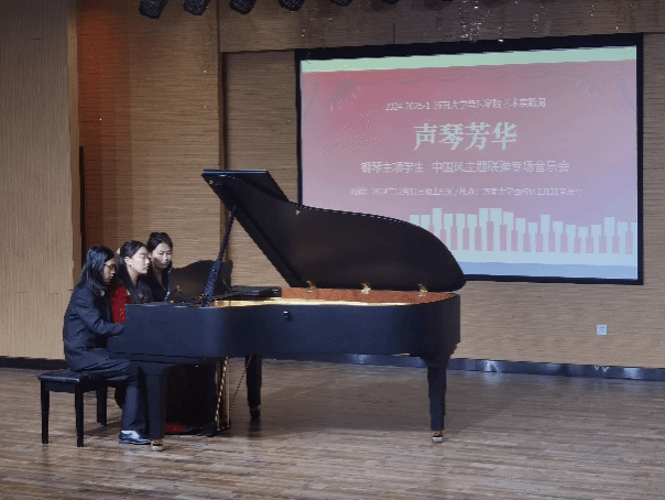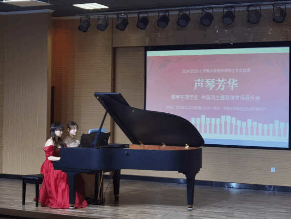 艺术实践周期间,为提升音教系钢琴主项学生的合作艺术与综合协作能力,12月12日晚上,“声琴芳华”——钢琴主项学生中国风主题联弹专场音乐会于济南大学西校区2J101音乐厅顺利举行。