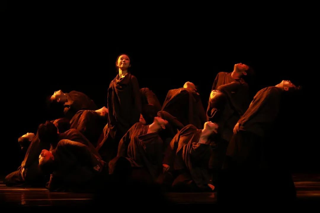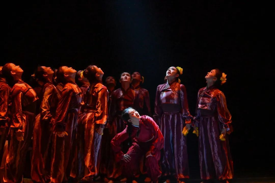 舞者们以沉稳而凝重的舞步,精心编织出一曲深情缅怀英雄的乐章。他们通过饱含忧伤与思念的动作,以及情感波澜般的身体起伏,触动了观众的悲悯与共情。显而易见,他们对情感的细腻把握以及舞蹈叙事能力的成熟,在舞台上以艺术形式展现了对生命与记忆的敬重与不舍。