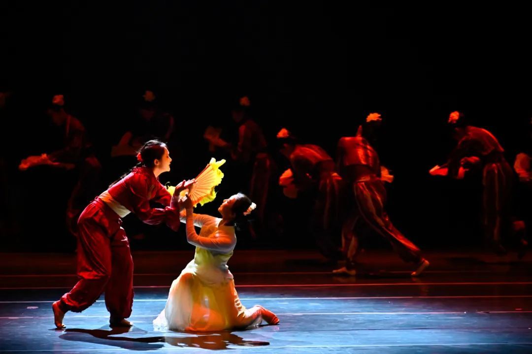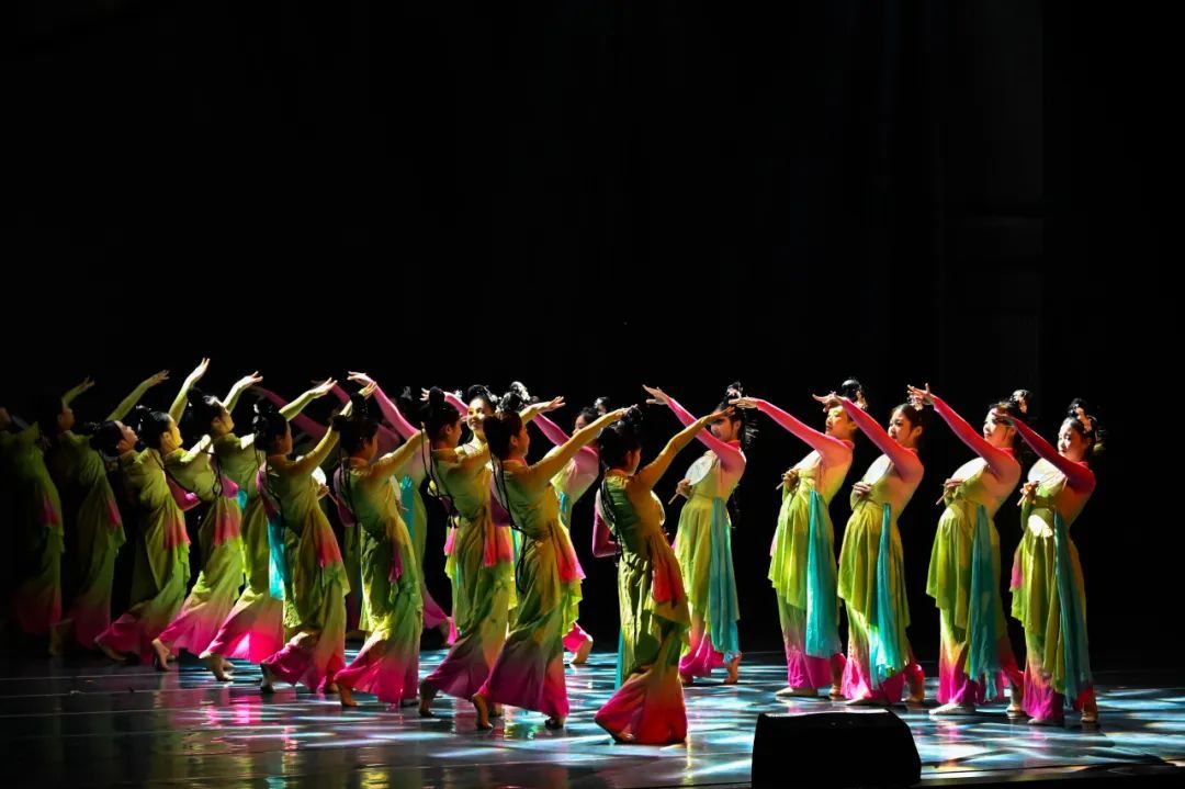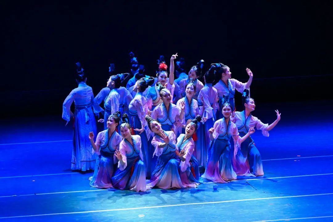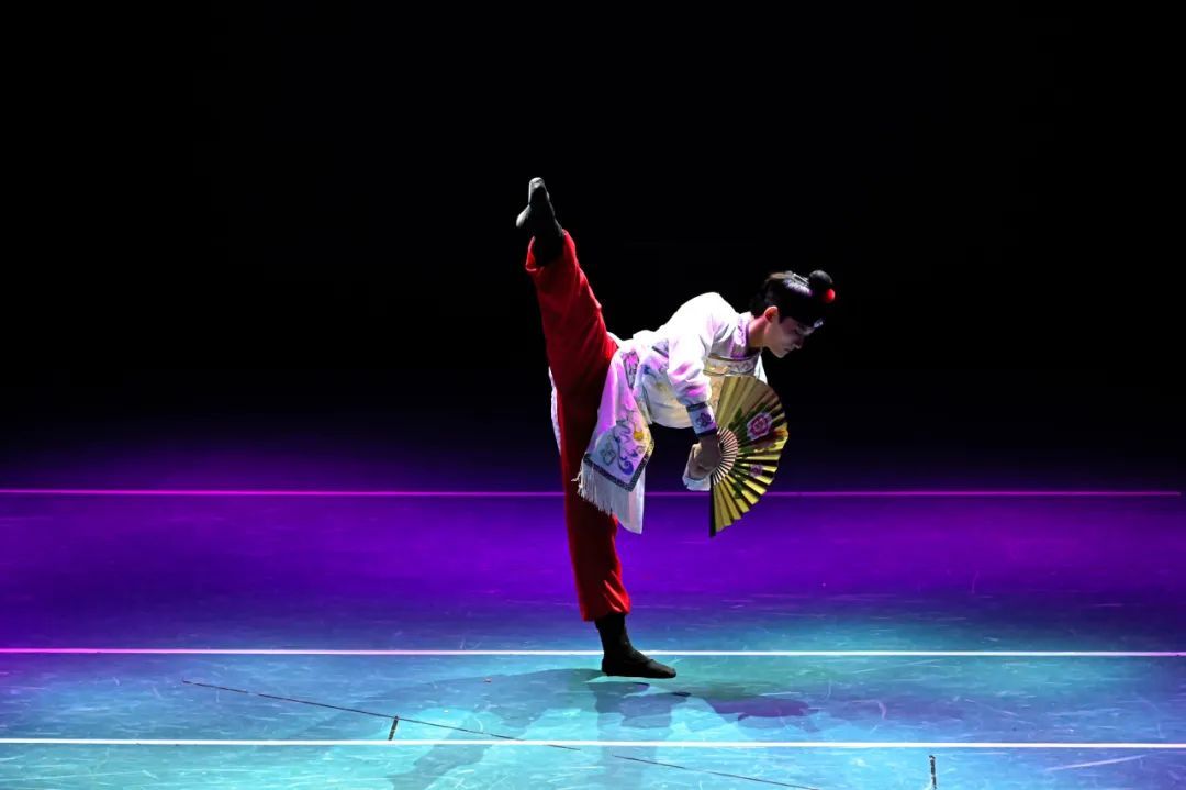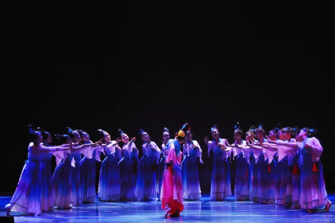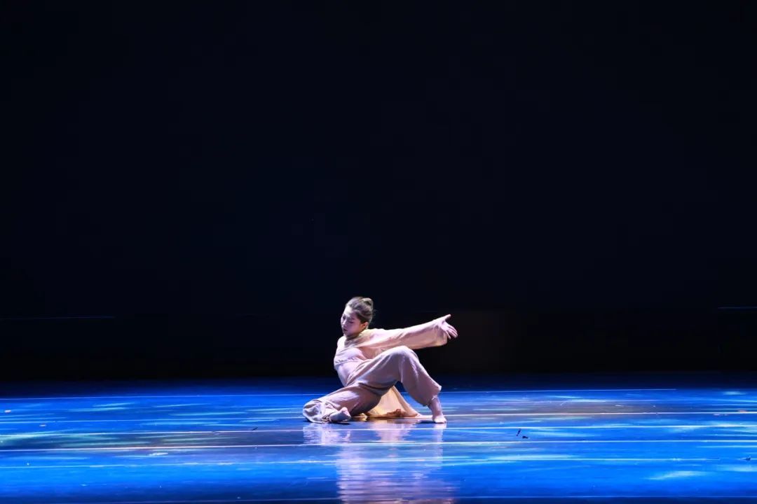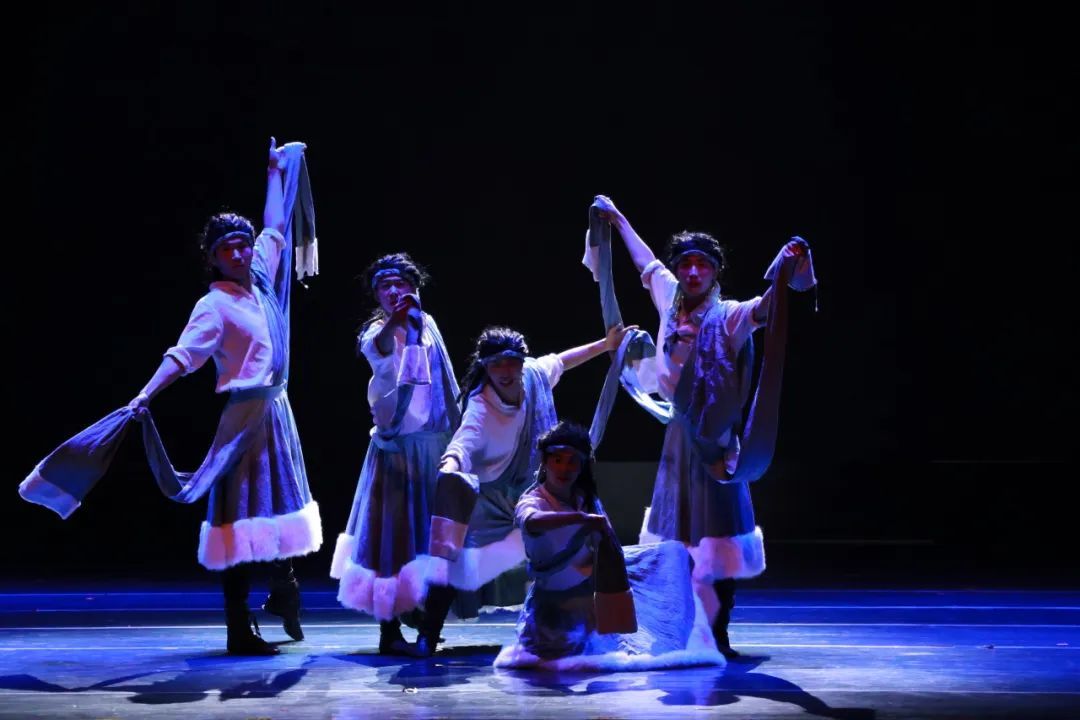 四位表演者在光影交织的舞台空间中,以舞蹈为笔、心灵为墨,绘制出令人赞叹的画面。他们的舞步与情感深度相互融合,深入观众的心灵,为观众带来了视觉与情感的双重盛宴。这展示了学院在教学中对学生综合艺术素养和情感共鸣能力培养的成果。学生们在合作表演中学会了相互配合,在舞台上展现了独特的光彩,并展示了卓越的舞台掌控力。
