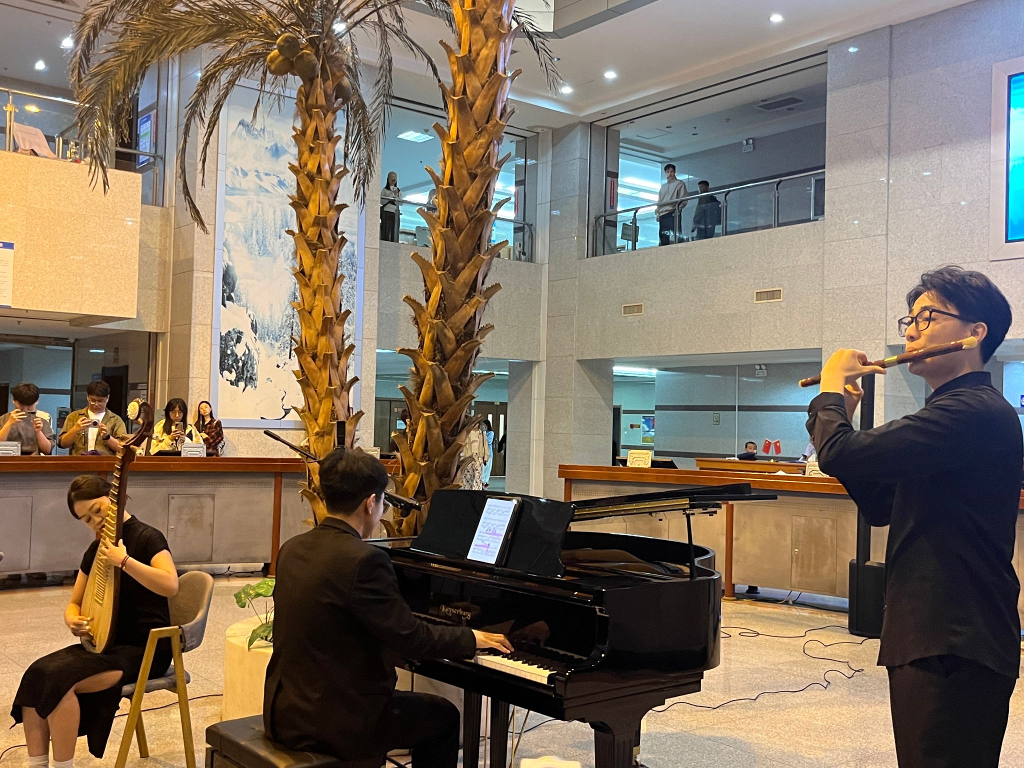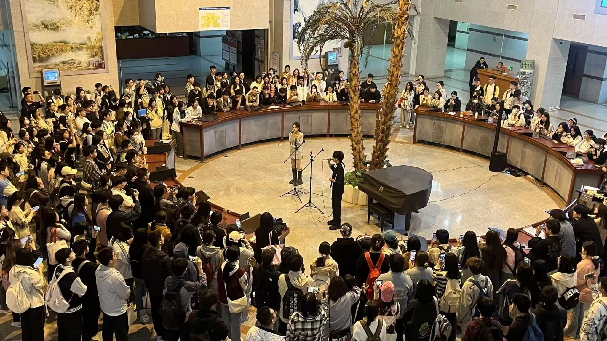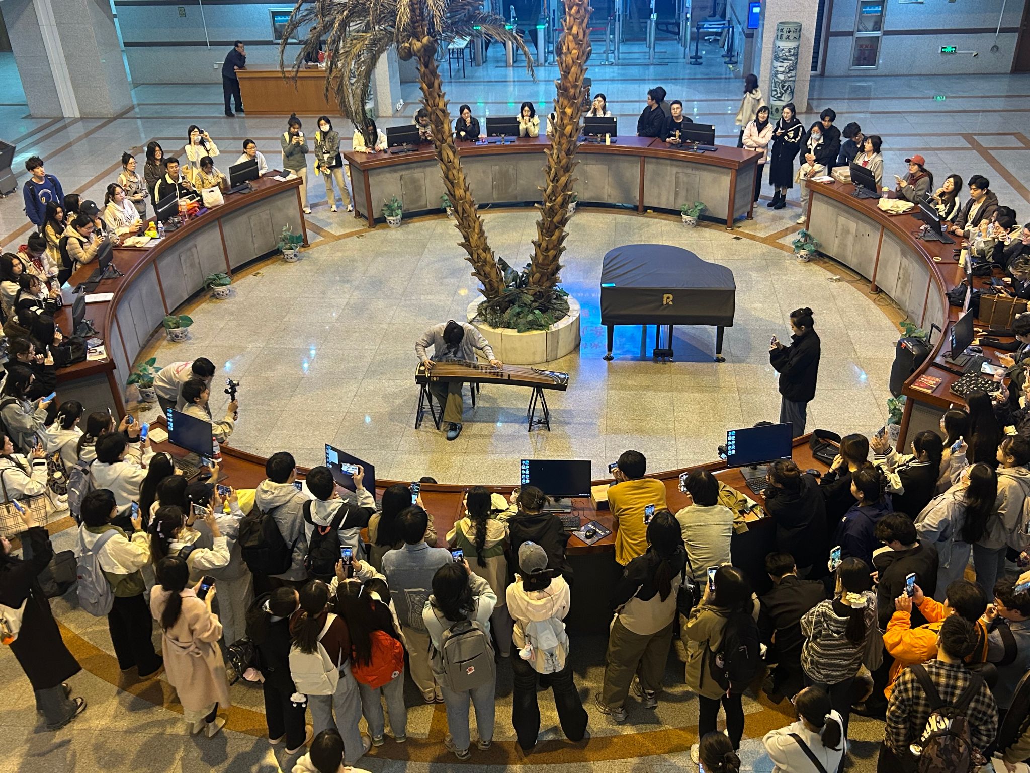图书馆闭馆秀成为了许多同学结束一天学习的期待,每次演出总有众多同学围观打卡,也有很多老师家属校友特意前来。在宁静的阅读氛围中融入艺术元素,让师生在艺术与知识的交融中感受心灵的舒展与美的浸润,美轮美奂,相得益彰。