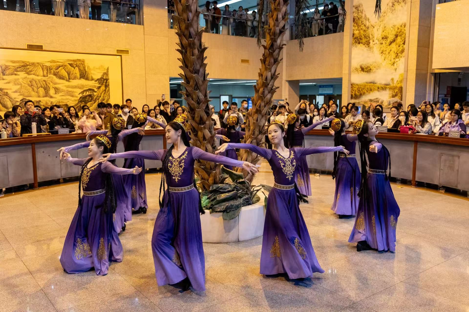 参与这次美育实践,宛如开启了一场穿越时空、邂逅多元魅力的奇幻之旅。排练时我们为一个眼神一个动作反复雕琢,汗水湿透衣衫却乐此不疲;音乐奏响我们完全沉浸其中,舞步与心跳同频,仿佛化身文化传播的使者,这不仅是一场表演,更是民族精神和传统文化的传递。