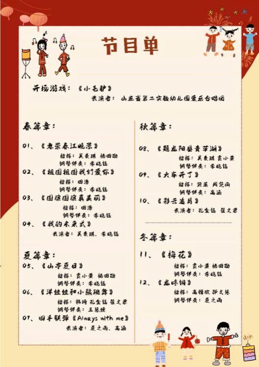 山东省第二实验幼儿园爱乐合唱团唱响《惠崇春江晚景》,稚嫩嗓音勾勒春日生机;《祖国祖国我们爱你》《国旗国旗真美丽》传递真挚热爱,音硕2401班吴麦琪、李晓钰带来的《我的未来式》更添青春活力!