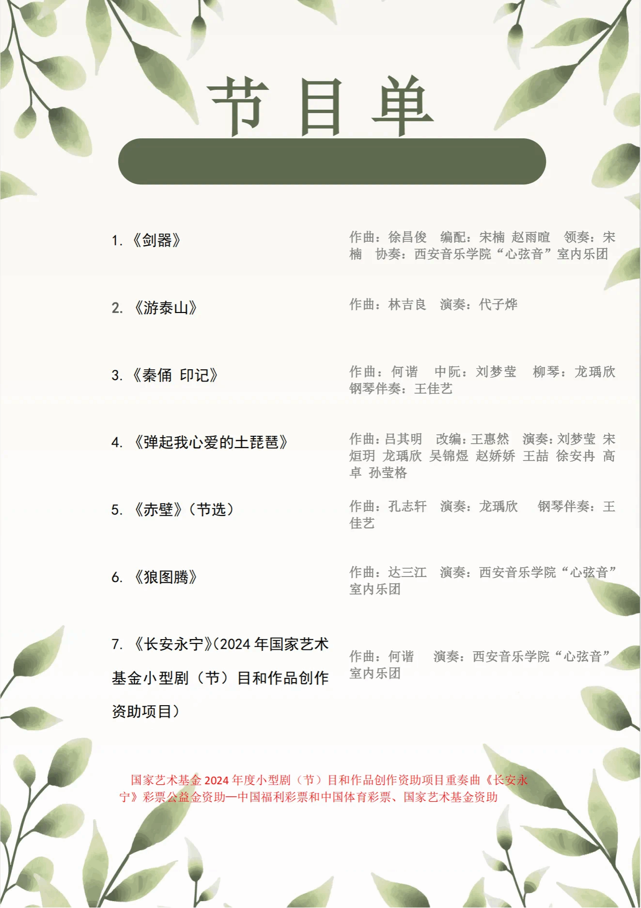 音乐会曲目单