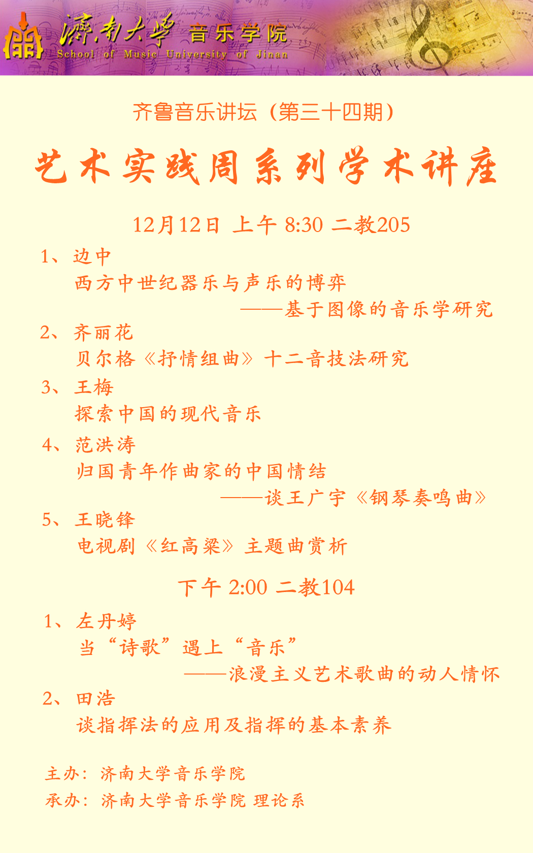 电子竞技比分 艺术实践周之齐鲁音乐讲坛(第三十四期)系列学术讲座通告