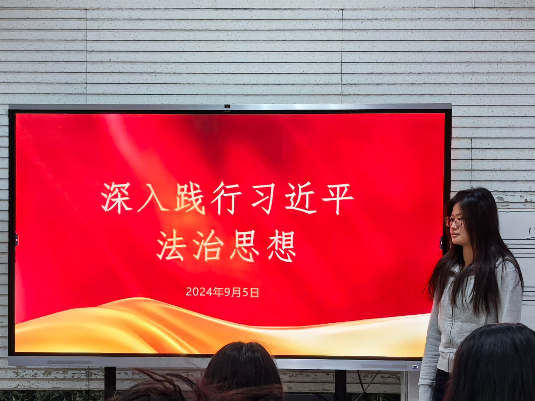 活动伊始,公跃桦将理论与实践深度融合,细致地讲述了习近平法治思想的重要内容以及深远意义。她结合当下备受关注的时事热点案例,巧妙设置趣味有奖问答环节,深入浅出地讲解了法治在国家治理和社会管理中的核心作用,以及每个公民在法治建设中的责任和义务。公跃桦鼓励同学们,作为新时代青年,我们要坚定法治自信,做社会主义法治的忠实崇尚者;要强化法治思维,做社会主义法治的自觉遵守者;要推动法治实践,做社会主义法治的坚定捍卫者。