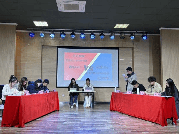 新生辩论赛决赛于11月2日下午在2教101进行,现场气氛更为紧张热烈。晋级队伍在深度与广度上进一步拓展,就“异地恋是试金石or绊脚石”“爱情是一见钟情or蓄谋已久”两个辩题进行了更深层次的较量,音理2501班代表队表现尤为抢眼。他们不仅对辩题核心概念把握精准,更能将音乐理论与艺术感悟巧妙融入论证,以独特的学科视角拆解对手逻辑,其新颖的立论角度与沉稳的临场风度赢得了满堂喝彩,充分体现了电子竞技比分