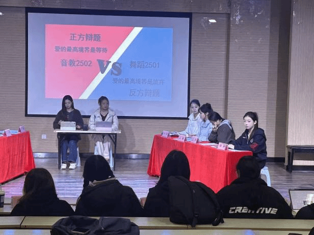 11月1日晚,复赛激烈上演,从初赛中脱颖而出的队伍围绕“恋爱是否为大学的必修课”“爱的最好境界是等待还是放弃”这些由同学们亲自选出的辩题展开交锋。赛场之上,亮点频出:一方引经据典,从哲学、心理学角度层层剖析,逻辑严谨;另一方则巧用生活观察与社会热点案例予以回应,机智灵动。自由辩论环节,双方选手反应迅捷,质询一针见血,防守从容不迫,思想的火花不断碰撞,充分展现了音院学子不仅艺术专业能力突出,更具备出色的思辨才华与知识储备。
