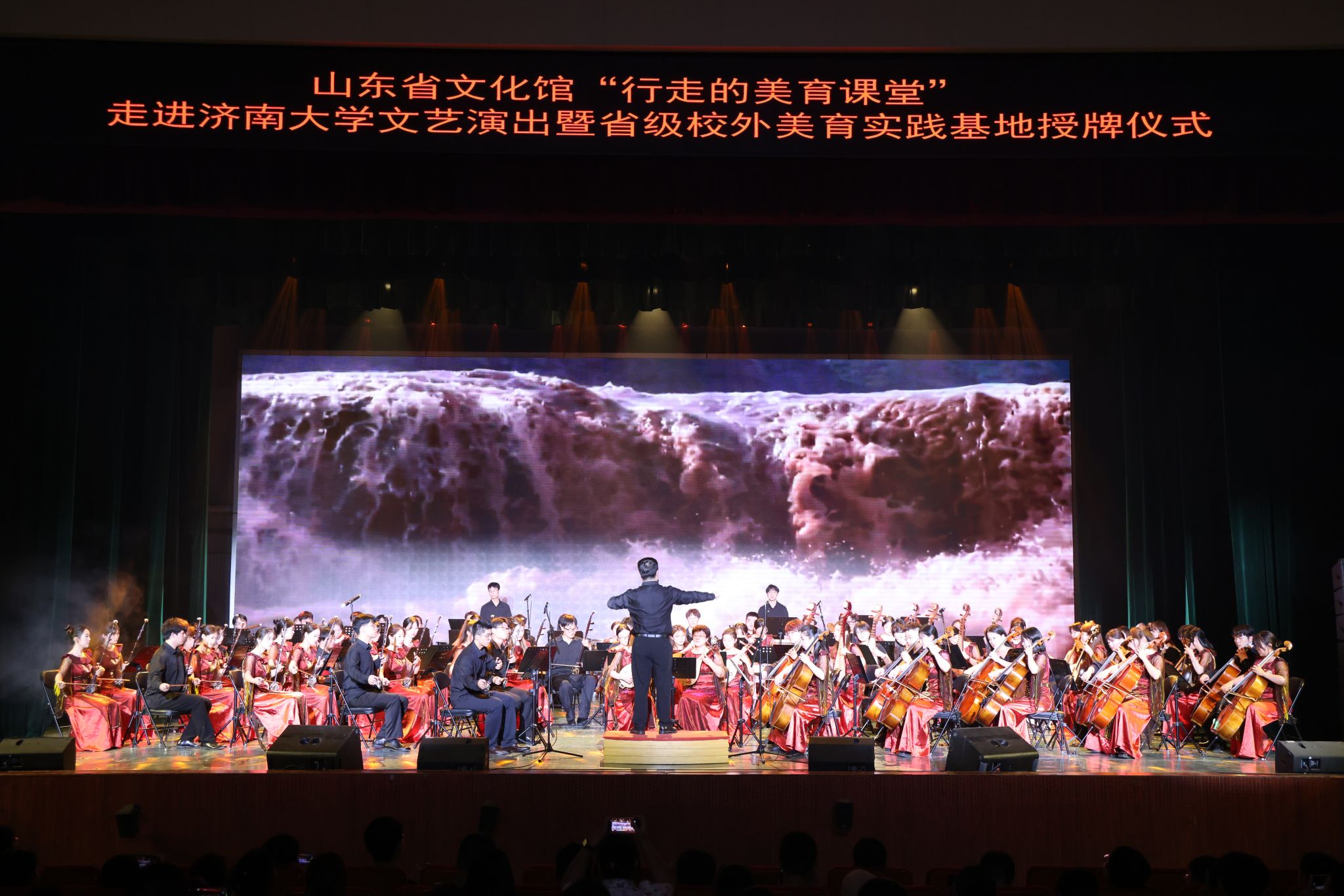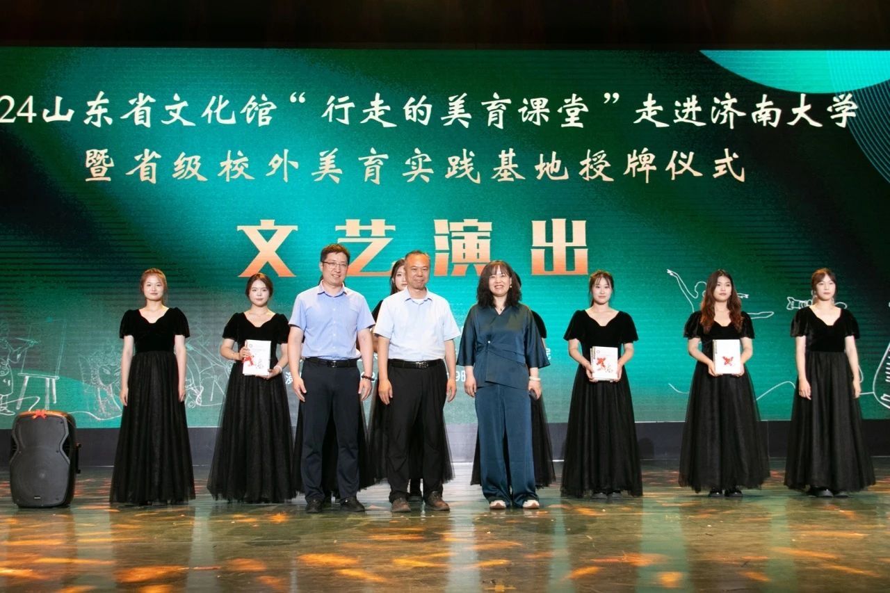 承办的“行走的美育课堂”走进济南大学文艺演出暨省级校外美育实践基地授牌仪式在济大礼堂隆重举行,山东省文化馆副馆长王芹、济南大学党委常委、副校长王霞,以及济南大学各部(处)领导、学校师生共同出席此次活动。