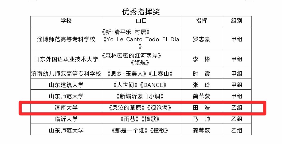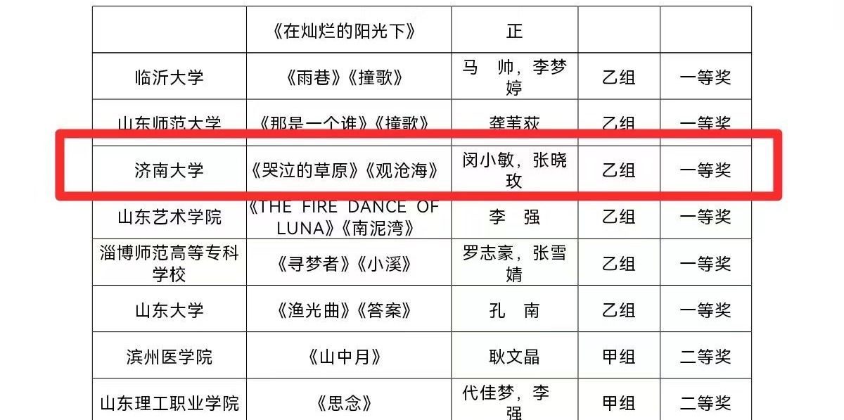 近日,山东省教育厅发布《2024年山东省大学生校园艺术节合唱戏剧专项展示活动获奖名单》,我校成绩斐然,荣获优秀组织奖、优秀指挥奖、优秀伴奏奖及表演(合唱)一等奖。
