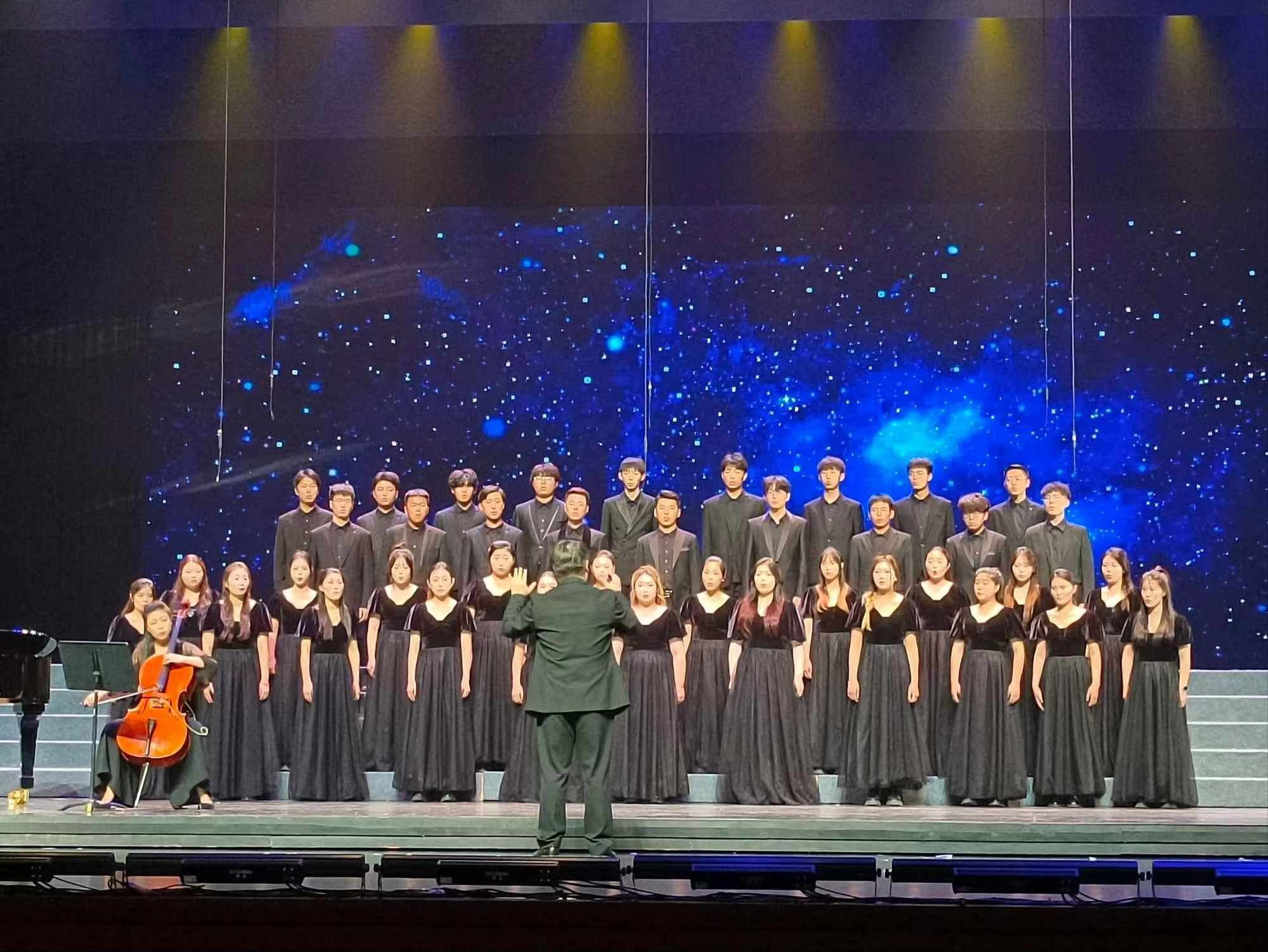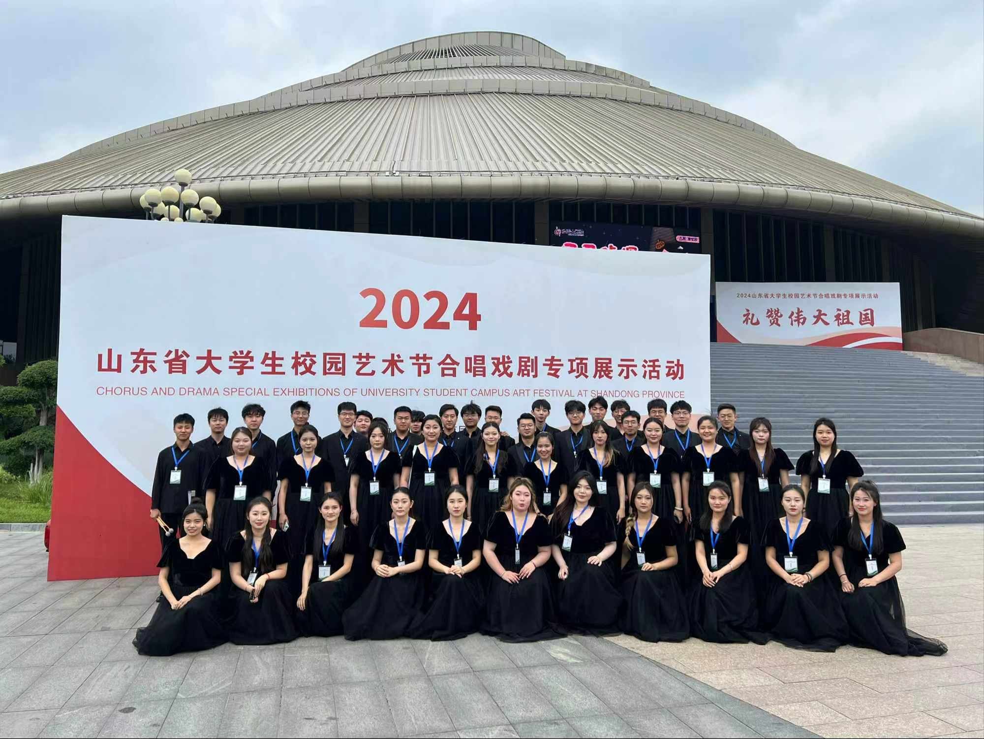 山东省大学生校园艺术节合唱戏剧专项展示活动以“青春谱写颂歌,礼赞伟大祖国”为主题,旨在弘扬爱国主义精神,丰富校园文化生活,展现新时代大学生独特艺术风采和卓越创新能力。我校师生高度重视、积极参与、精心策划,充分展现了我校师生杰出的艺术才华和团队协作能力。