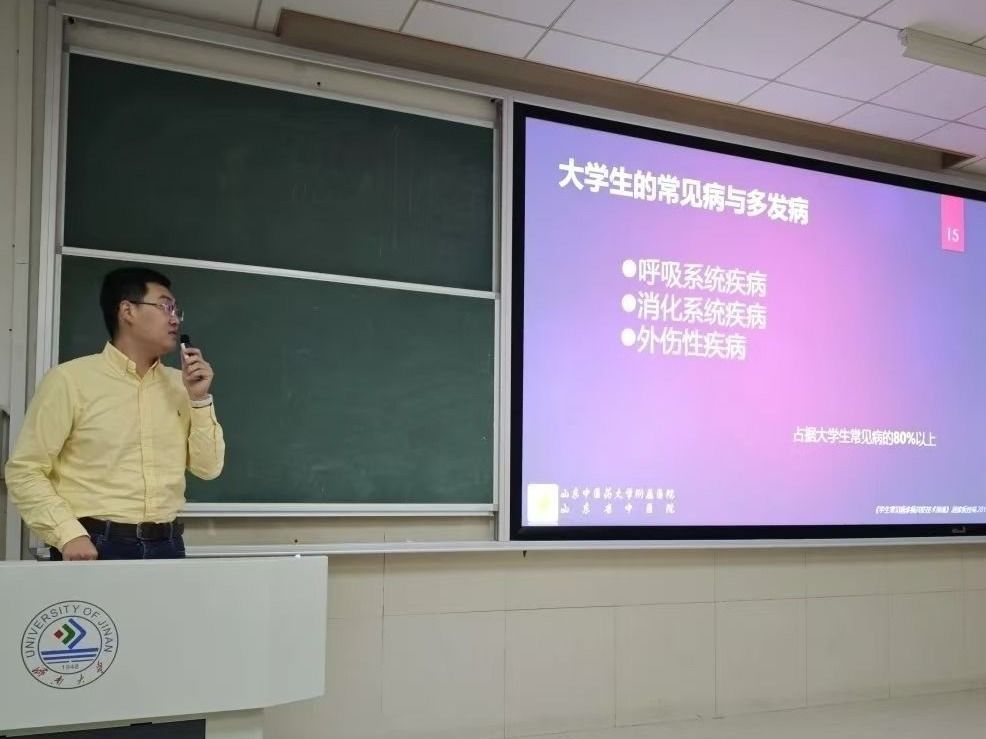 特邀山东省中医院肾内科主治医师修方睿及济南大学体育学院教师任海涛,在11J6401举办“安全卫生与应急救护”的安全教育专题讲座。